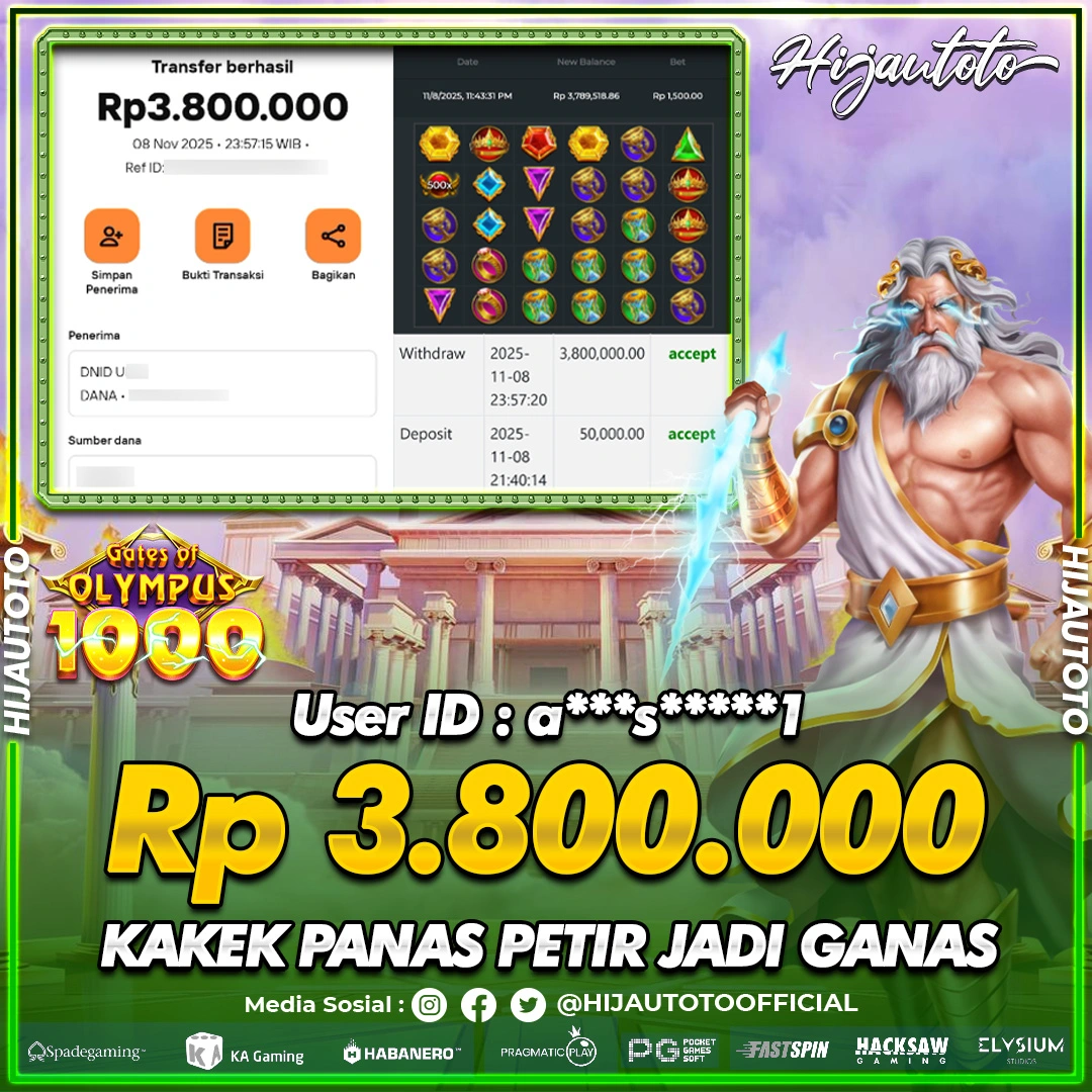 Karena berhasil memenangkan Rp.Rp.2.000.000 dari permainan seru SLOT WISDOM OF ATHENA 1000 di HIJAUTOTO! πŸ’°πŸ’Έ