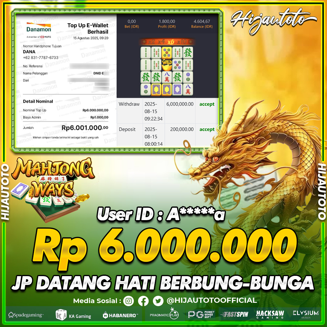 Selamat datang di HIJAUTOTO, tempatnya seru-seruan dan cuan besar! Mulai main cukup dengan modal Rp5.000 aja, taruhan super murah dari Rp100 perak! Mau main slot yang penuh warna? Atau togel dari 20 pasaran paling hits? Atau mungkin tembak ikan yang bikin deg-degan? Tenang, ada juga taruhan bola, sabung ayam, dan live casino yang bikin suasana makin hidup! Daftar sekarang dan dapetin bonus new member 100% langsung, biar modalmu makin tebal. Deposit gampang banget, bisa pakai QRIS, dan kalau butuh bantuan, customer service kita siap 24 jam nonstop. Jadi, tunggu apa lagi? Yuk, gabung dan bawa pulang kemenangannya cuma di HIJAUTOTO!