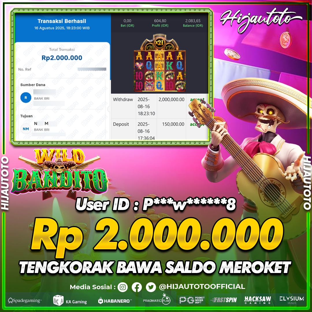 Selamat datang di HIJAUTOTO, tempatnya seru-seruan dan cuan besar! Mulai main cukup dengan modal Rp5.000 aja, taruhan super murah dari Rp100 perak! Mau main slot yang penuh warna? Atau togel dari 20 pasaran paling hits? Atau mungkin tembak ikan yang bikin deg-degan? Tenang, ada juga taruhan bola, sabung ayam, dan live casino yang bikin suasana makin hidup! Daftar sekarang dan dapetin bonus new member 100% langsung, biar modalmu makin tebal. Deposit gampang banget, bisa pakai QRIS, dan kalau butuh bantuan, customer service kita siap 24 jam nonstop. Jadi, tunggu apa lagi? Yuk, gabung dan bawa pulang kemenangannya cuma di HIJAUTOTO!