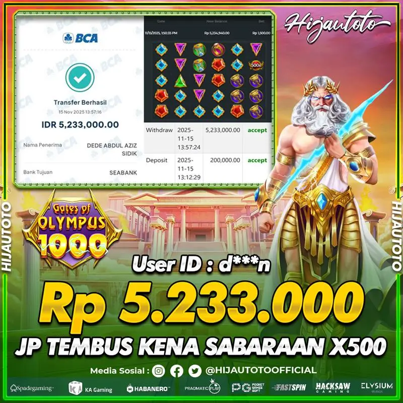 Selamat datang di HIJAUTOTO, tempatnya seru-seruan dan cuan besar! Mulai main cukup dengan modal Rp5.000 aja, taruhan super murah dari Rp100 perak! Mau main slot yang penuh warna? Atau togel dari 20 pasaran paling hits? Atau mungkin tembak ikan yang bikin deg-degan? Tenang, ada juga taruhan bola, sabung ayam, dan live casino yang bikin suasana makin hidup! Daftar sekarang dan dapetin bonus new member 100% langsung, biar modalmu makin tebal. Deposit gampang banget, bisa pakai QRIS, dan kalau butuh bantuan, customer service kita siap 24 jam nonstop. Jadi, tunggu apa lagi? Yuk, gabung dan bawa pulang kemenangannya cuma di HIJAUTOTO!