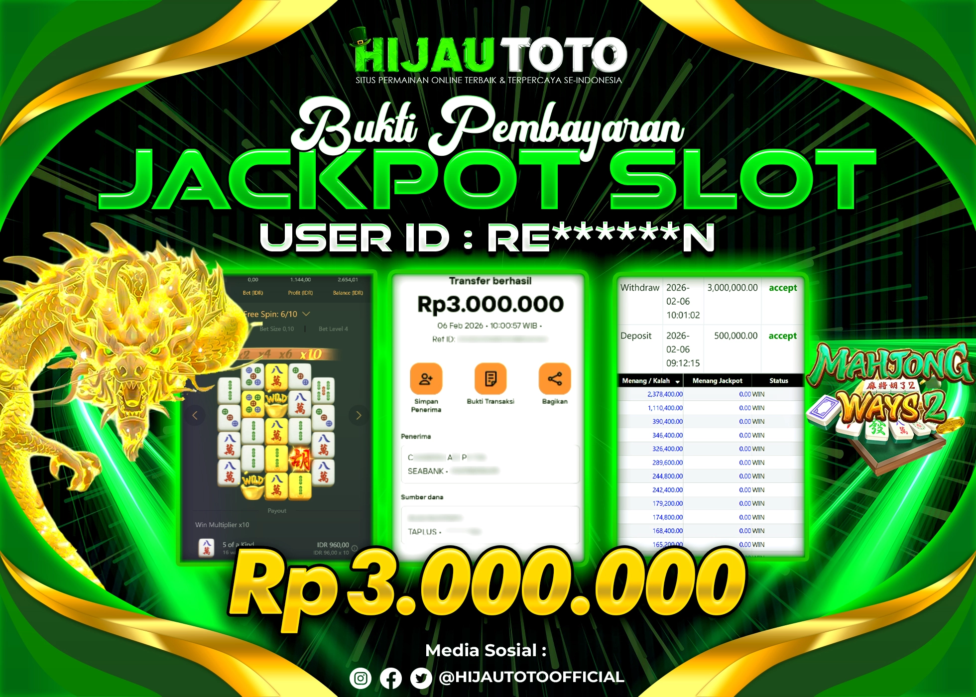 Bergabung dengan HIJAUTOTO sangat mudah dan cepat. Cukup lakukan pendaftaran dengan data lengkap, lakukan deposit minimal Rp5.000 melalui berbagai metode termasuk QRIS, dan mulai bertaruh dengan minimal taruhan Rp100. Dapatkan juga bonus new member 100% untuk modal bermain lebih besar.