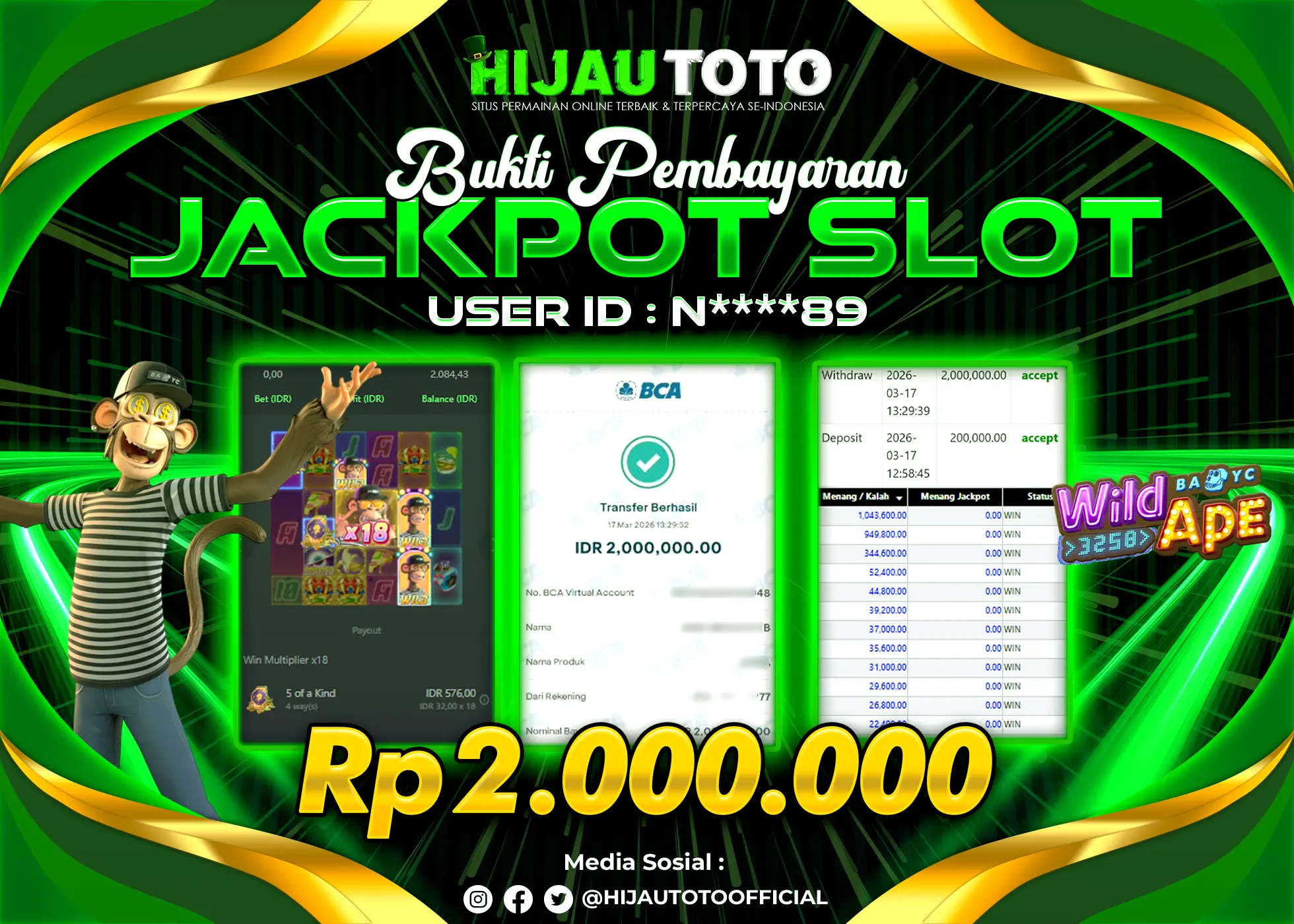 Selamat datang di HIJAUTOTO, tempatnya seru-seruan dan cuan besar! Mulai main cukup dengan modal Rp5.000 aja, taruhan super murah dari Rp100 perak! Mau main slot yang penuh warna? Atau togel dari 20 pasaran paling hits? Atau mungkin tembak ikan yang bikin deg-degan? Tenang, ada juga taruhan bola, sabung ayam, dan live casino yang bikin suasana makin hidup! Daftar sekarang dan dapetin bonus new member 100% langsung, biar modalmu makin tebal. Deposit gampang banget, bisa pakai QRIS, dan kalau butuh bantuan, customer service kita siap 24 jam nonstop. Jadi, tunggu apa lagi? Yuk, gabung dan bawa pulang kemenangannya cuma di HIJAUTOTO!