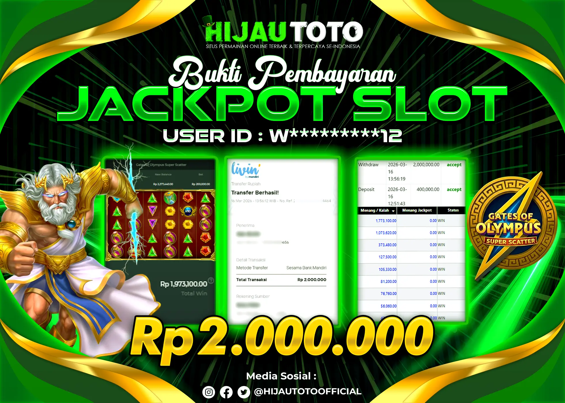 Bergabung dengan HIJAUTOTO sangat mudah dan cepat. Cukup lakukan pendaftaran dengan data lengkap, lakukan deposit minimal Rp5.000 melalui berbagai metode termasuk QRIS, dan mulai bertaruh dengan minimal taruhan Rp100. Dapatkan juga bonus new member 100% untuk modal bermain lebih besar.