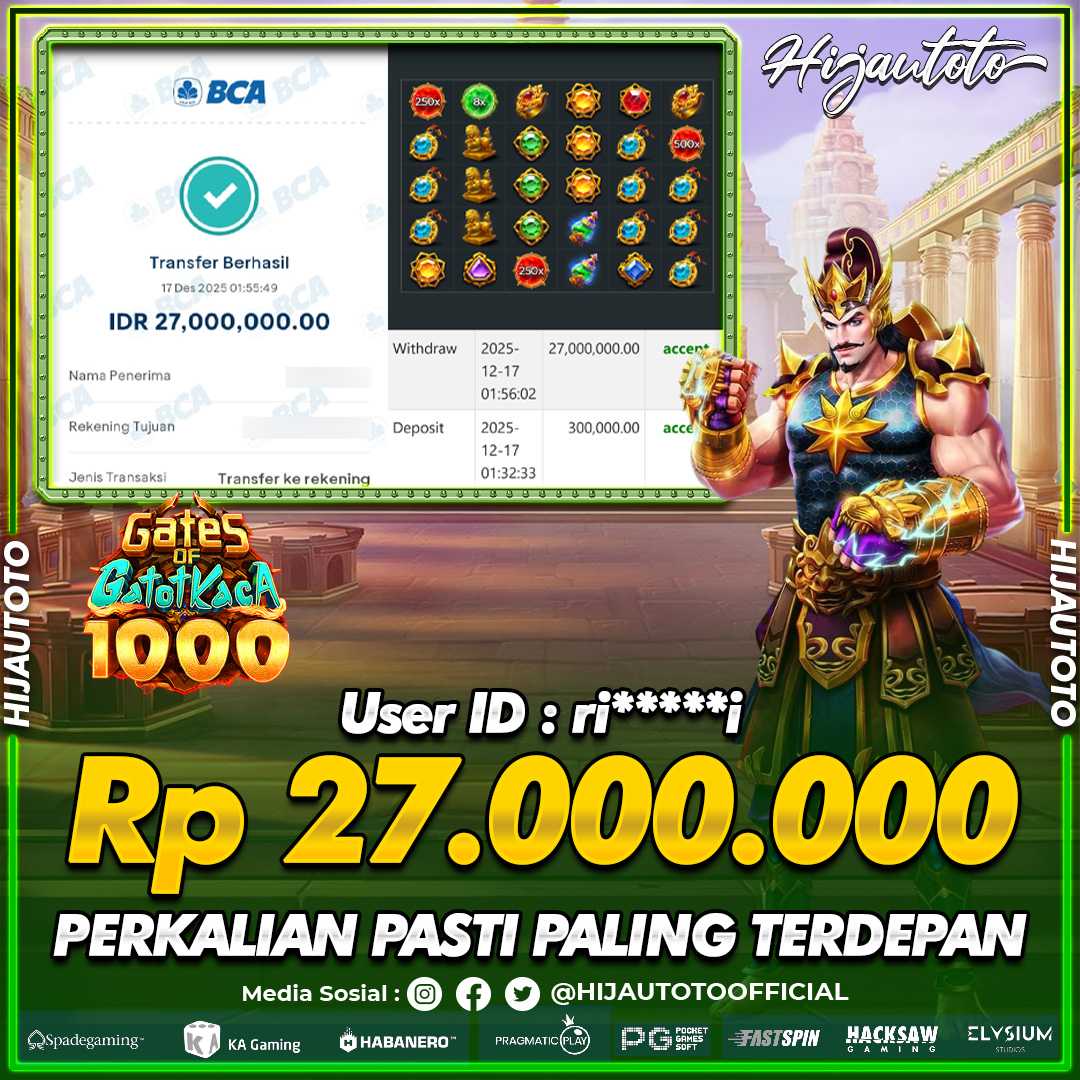 Selamat datang di HIJAUTOTO, tempatnya seru-seruan dan cuan besar! Mulai main cukup dengan modal Rp5.000 aja, taruhan super murah dari Rp100 perak! Mau main slot yang penuh warna? Atau togel dari 20 pasaran paling hits? Atau mungkin tembak ikan yang bikin deg-degan? Tenang, ada juga taruhan bola, sabung ayam, dan live casino yang bikin suasana makin hidup! Daftar sekarang dan dapetin bonus new member 100% langsung, biar modalmu makin tebal. Deposit gampang banget, bisa pakai QRIS, dan kalau butuh bantuan, customer service kita siap 24 jam nonstop. Jadi, tunggu apa lagi? Yuk, gabung dan bawa pulang kemenangannya cuma di HIJAUTOTO!