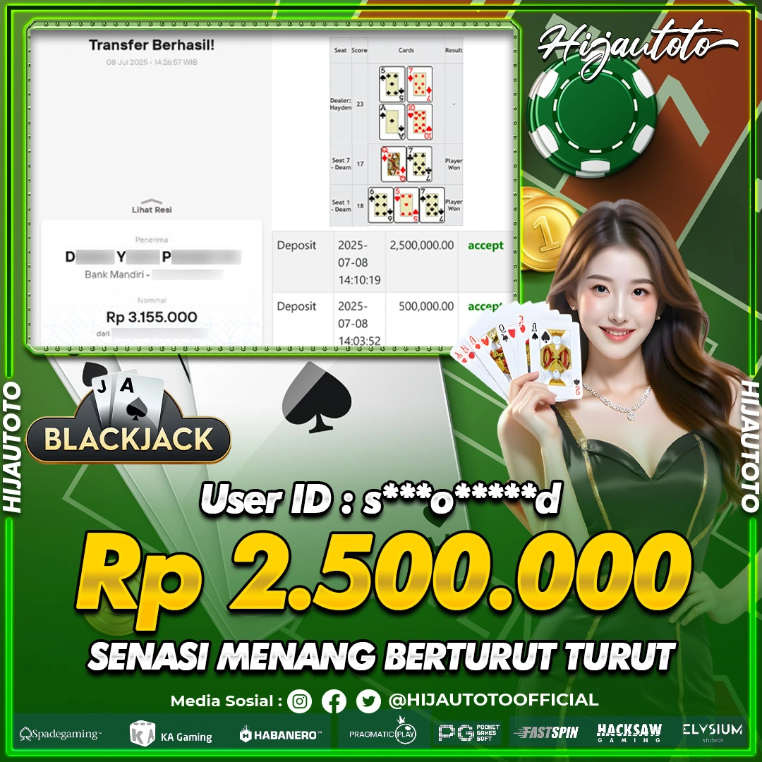 Selamat datang di HIJAUTOTO, tempatnya seru-seruan dan cuan besar! Mulai main cukup dengan modal Rp5.000 aja, taruhan super murah dari Rp100 perak! Mau main slot yang penuh warna? Atau togel dari 20 pasaran paling hits? Atau mungkin tembak ikan yang bikin deg-degan? Tenang, ada juga taruhan bola, sabung ayam, dan live casino yang bikin suasana makin hidup! Daftar sekarang dan dapetin bonus new member 100% langsung, biar modalmu makin tebal. Deposit gampang banget, bisa pakai QRIS, dan kalau butuh bantuan, customer service kita siap 24 jam nonstop. Jadi, tunggu apa lagi? Yuk, gabung dan bawa pulang kemenangannya cuma di HIJAUTOTO!