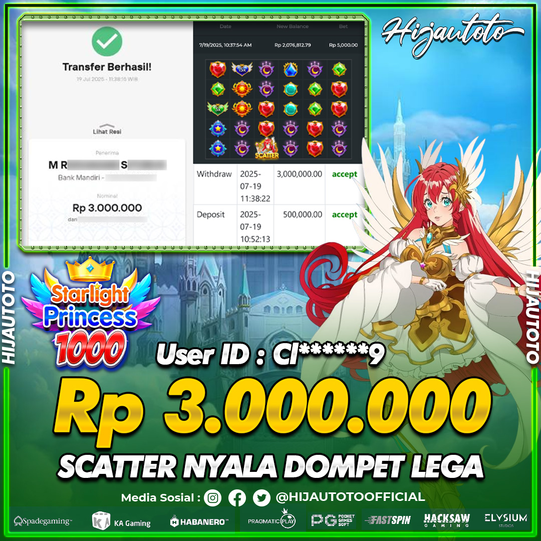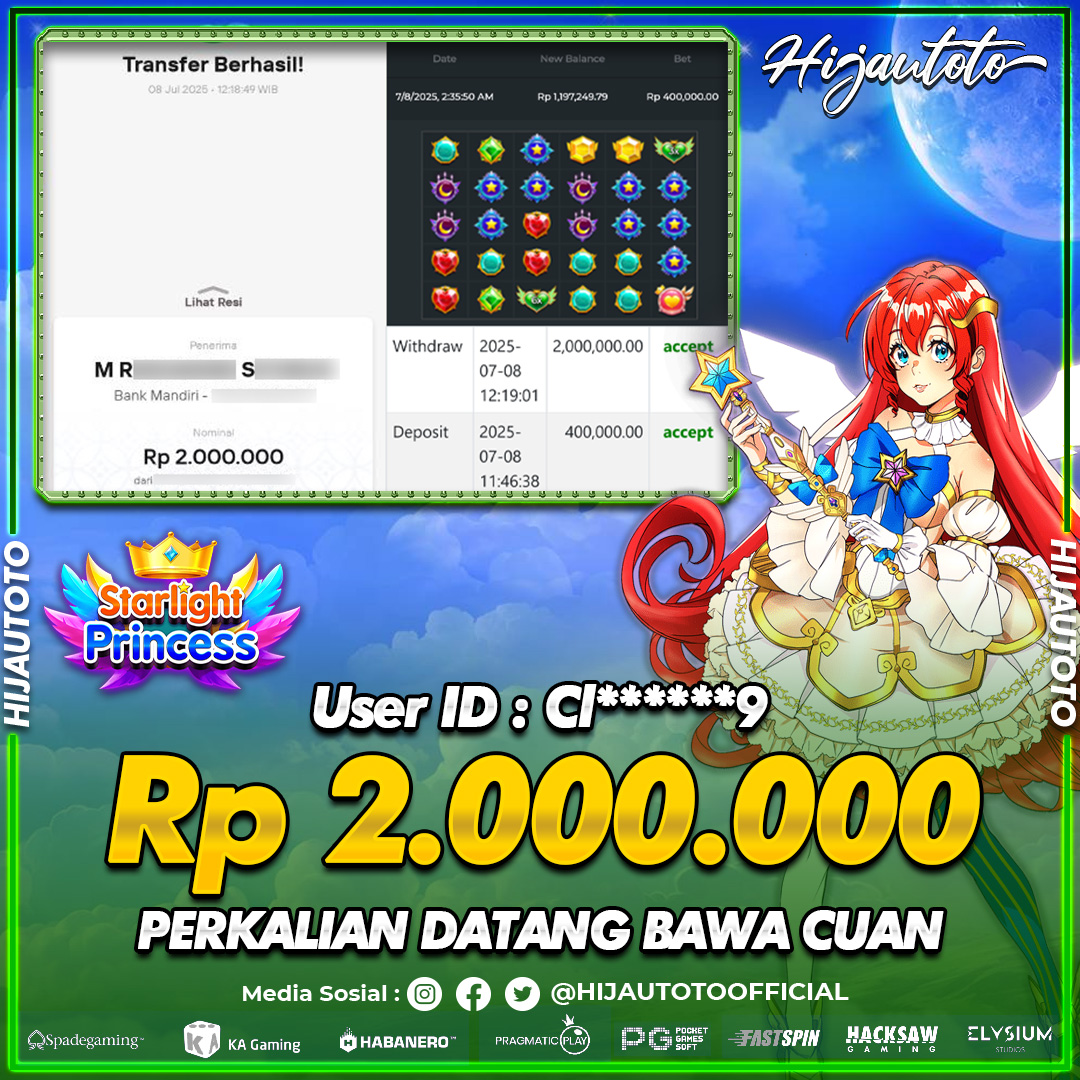 Selamat Kepada Member HIJAUTOTO CI******9 Telah Jackpot Di SLOT STARLIGHT PRINCESS