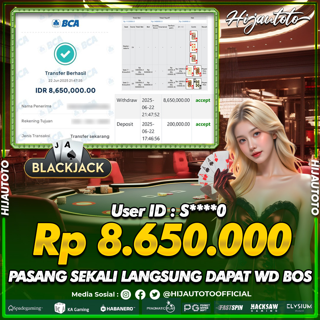 Selamat datang di HIJAUTOTO, tempatnya seru-seruan dan cuan besar! Mulai main cukup dengan modal Rp5.000 aja, taruhan super murah dari Rp100 perak! Mau main slot yang penuh warna? Atau togel dari 20 pasaran paling hits? Atau mungkin tembak ikan yang bikin deg-degan? Tenang, ada juga taruhan bola, sabung ayam, dan live casino yang bikin suasana makin hidup! Daftar sekarang dan dapetin bonus new member 100% langsung, biar modalmu makin tebal. Deposit gampang banget, bisa pakai QRIS, dan kalau butuh bantuan, customer service kita siap 24 jam nonstop. Jadi, tunggu apa lagi? Yuk, gabung dan bawa pulang kemenangannya cuma di HIJAUTOTO!