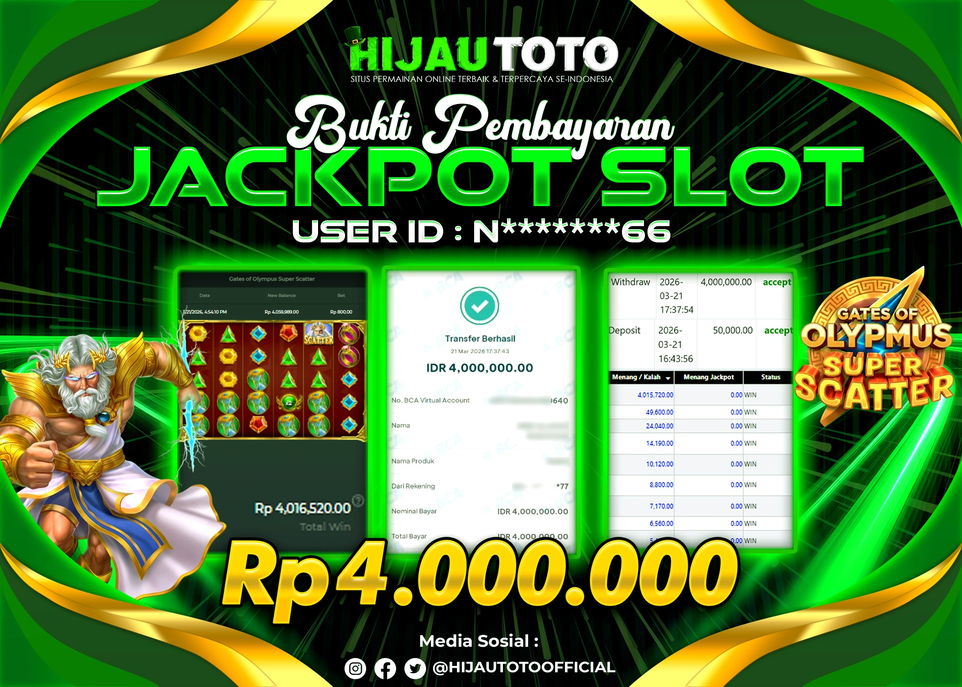 Bergabung dengan HIJAUTOTO sangat mudah dan cepat. Cukup lakukan pendaftaran dengan data lengkap, lakukan deposit minimal Rp5.000 melalui berbagai metode termasuk QRIS, dan mulai bertaruh dengan minimal taruhan Rp100. Dapatkan juga bonus new member 100% untuk modal bermain lebih besar.
