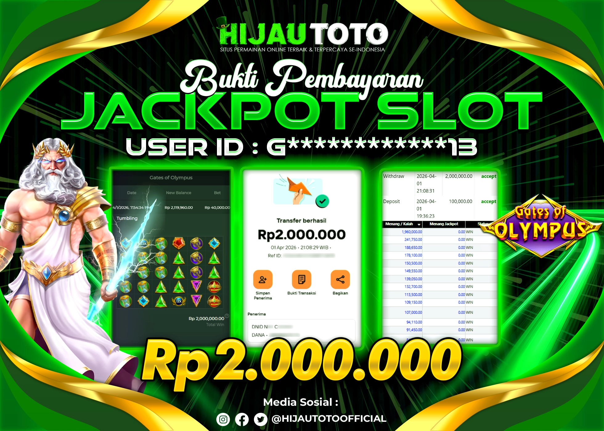 Selamat datang di HIJAUTOTO, tempatnya seru-seruan dan cuan besar! Mulai main cukup dengan modal Rp5.000 aja, taruhan super murah dari Rp100 perak! Mau main slot yang penuh warna? Atau togel dari 20 pasaran paling hits? Atau mungkin tembak ikan yang bikin deg-degan? Tenang, ada juga taruhan bola, sabung ayam, dan live casino yang bikin suasana makin hidup! Daftar sekarang dan dapetin bonus new member 100% langsung, biar modalmu makin tebal. Deposit gampang banget, bisa pakai QRIS, dan kalau butuh bantuan, customer service kita siap 24 jam nonstop. Jadi, tunggu apa lagi? Yuk, gabung dan bawa pulang kemenangannya cuma di HIJAUTOTO!