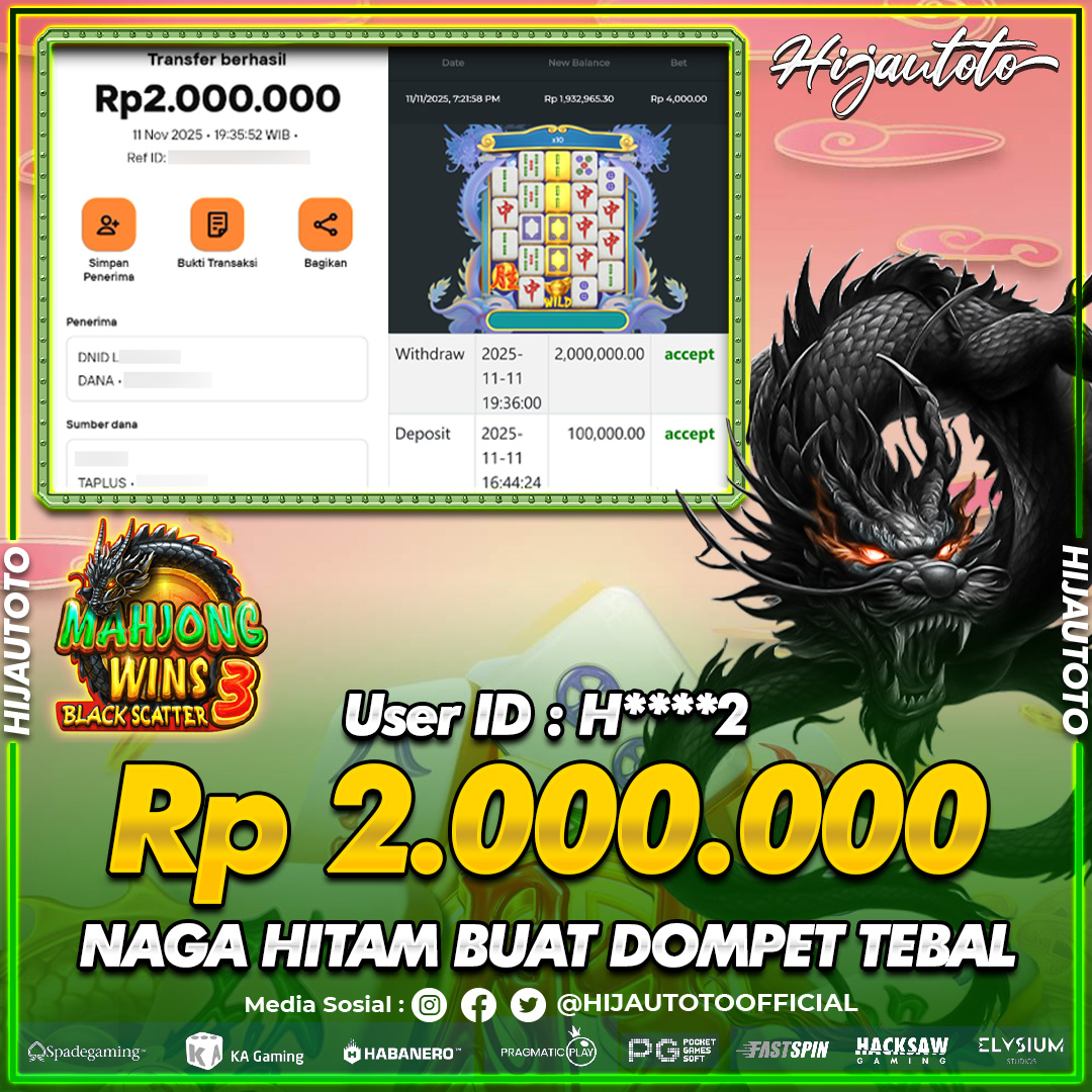 Selamat datang di HIJAUTOTO, tempatnya seru-seruan dan cuan besar! Mulai main cukup dengan modal Rp5.000 aja, taruhan super murah dari Rp100 perak! Mau main slot yang penuh warna? Atau togel dari 20 pasaran paling hits? Atau mungkin tembak ikan yang bikin deg-degan? Tenang, ada juga taruhan bola, sabung ayam, dan live casino yang bikin suasana makin hidup! Daftar sekarang dan dapetin bonus new member 100% langsung, biar modalmu makin tebal. Deposit gampang banget, bisa pakai QRIS, dan kalau butuh bantuan, customer service kita siap 24 jam nonstop. Jadi, tunggu apa lagi? Yuk, gabung dan bawa pulang kemenangannya cuma di HIJAUTOTO!