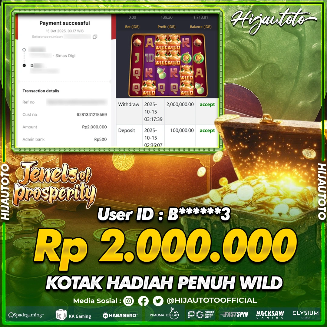 Selamat datang di HIJAUTOTO, tempatnya seru-seruan dan cuan besar! Mulai main cukup dengan modal Rp5.000 aja, taruhan super murah dari Rp100 perak! Mau main slot yang penuh warna? Atau togel dari 20 pasaran paling hits? Atau mungkin tembak ikan yang bikin deg-degan? Tenang, ada juga taruhan bola, sabung ayam, dan live casino yang bikin suasana makin hidup! Daftar sekarang dan dapetin bonus new member 100% langsung, biar modalmu makin tebal. Deposit gampang banget, bisa pakai QRIS, dan kalau butuh bantuan, customer service kita siap 24 jam nonstop. Jadi, tunggu apa lagi? Yuk, gabung dan bawa pulang kemenangannya cuma di HIJAUTOTO!