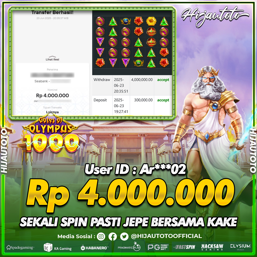 Selamat datang di HIJAUTOTO, tempatnya seru-seruan dan cuan besar! Mulai main cukup dengan modal Rp5.000 aja, taruhan super murah dari Rp100 perak! Mau main slot yang penuh warna? Atau togel dari 20 pasaran paling hits? Atau mungkin tembak ikan yang bikin deg-degan? Tenang, ada juga taruhan bola, sabung ayam, dan live casino yang bikin suasana makin hidup! Daftar sekarang dan dapetin bonus new member 100% langsung, biar modalmu makin tebal. Deposit gampang banget, bisa pakai QRIS, dan kalau butuh bantuan, customer service kita siap 24 jam nonstop. Jadi, tunggu apa lagi? Yuk, gabung dan bawa pulang kemenangannya cuma di HIJAUTOTO!