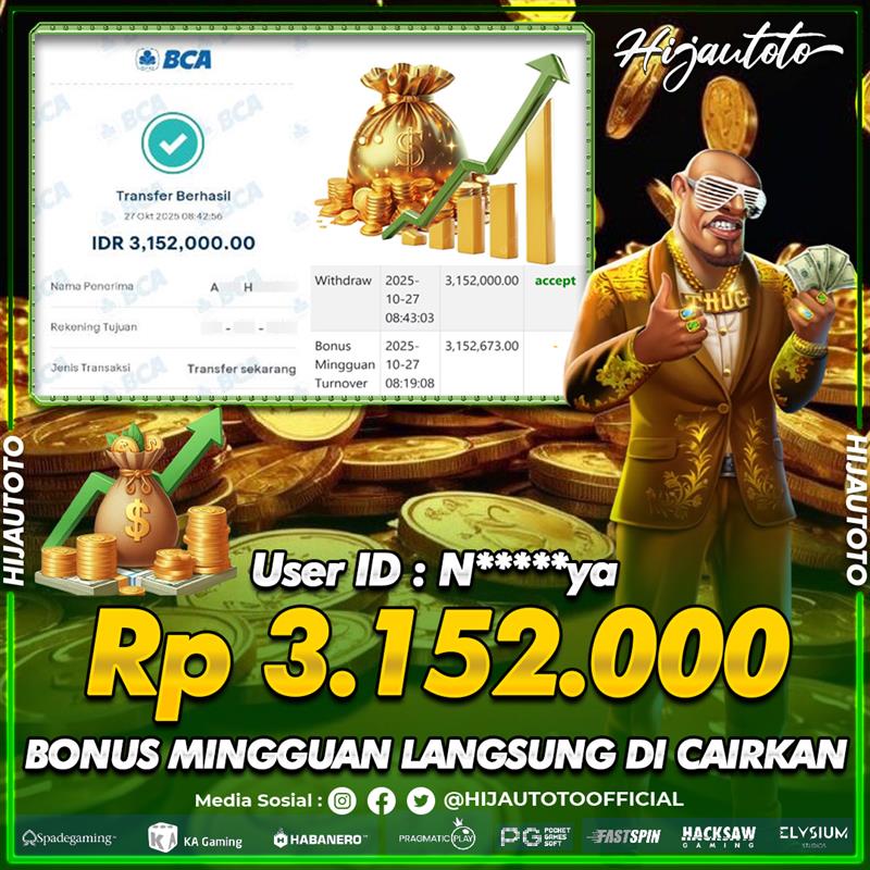 Selamat datang di HIJAUTOTO, tempatnya seru-seruan dan cuan besar! Mulai main cukup dengan modal Rp5.000 aja, taruhan super murah dari Rp100 perak! Mau main slot yang penuh warna? Atau togel dari 20 pasaran paling hits? Atau mungkin tembak ikan yang bikin deg-degan? Tenang, ada juga taruhan bola, sabung ayam, dan live casino yang bikin suasana makin hidup! Daftar sekarang dan dapetin bonus new member 100% langsung, biar modalmu makin tebal. Deposit gampang banget, bisa pakai QRIS, dan kalau butuh bantuan, customer service kita siap 24 jam nonstop. Jadi, tunggu apa lagi? Yuk, gabung dan bawa pulang kemenangannya cuma di HIJAUTOTO!