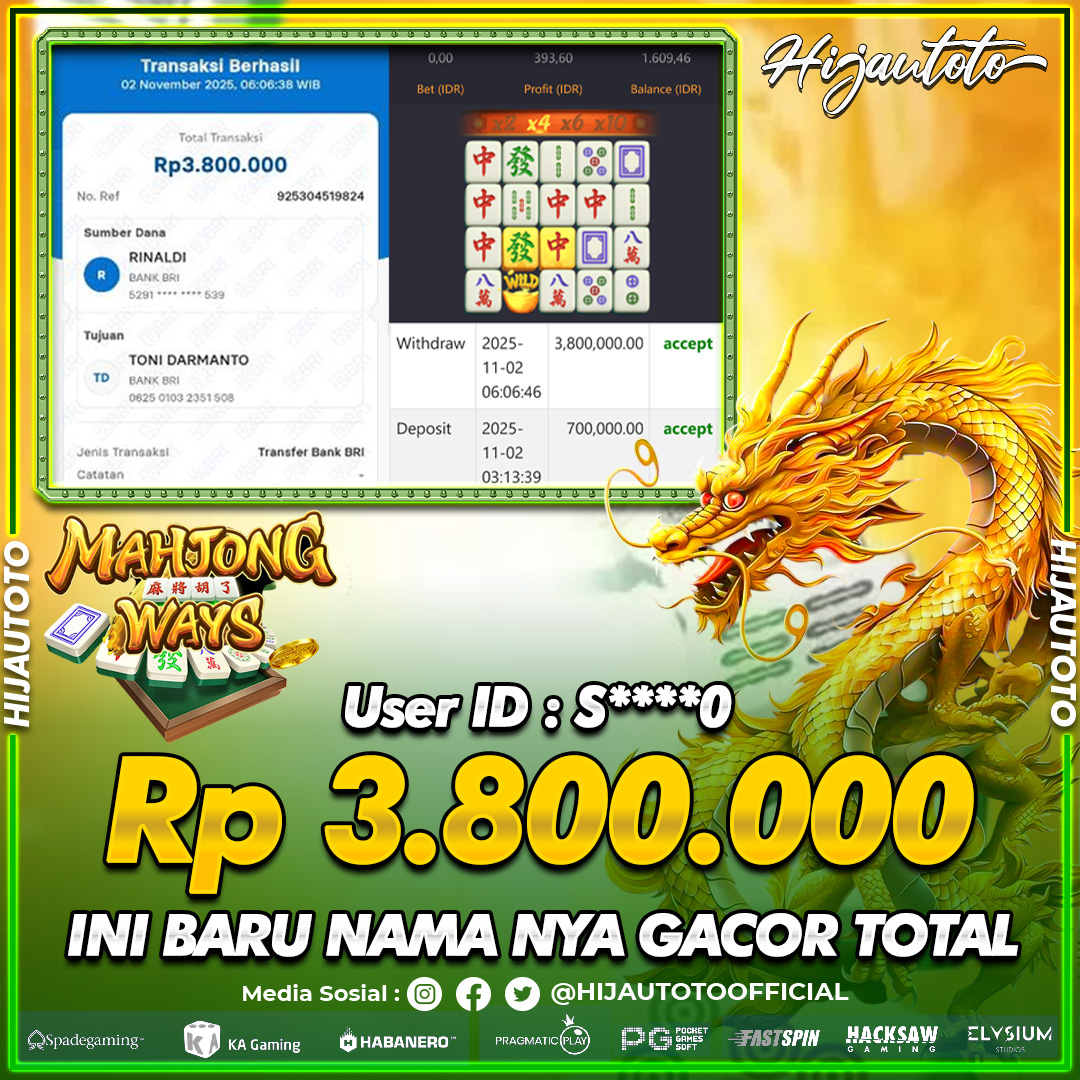 Selamat datang di HIJAUTOTO, tempatnya seru-seruan dan cuan besar! Mulai main cukup dengan modal Rp5.000 aja, taruhan super murah dari Rp100 perak! Mau main slot yang penuh warna? Atau togel dari 20 pasaran paling hits? Atau mungkin tembak ikan yang bikin deg-degan? Tenang, ada juga taruhan bola, sabung ayam, dan live casino yang bikin suasana makin hidup! Daftar sekarang dan dapetin bonus new member 100% langsung, biar modalmu makin tebal. Deposit gampang banget, bisa pakai QRIS, dan kalau butuh bantuan, customer service kita siap 24 jam nonstop. Jadi, tunggu apa lagi? Yuk, gabung dan bawa pulang kemenangannya cuma di HIJAUTOTO!
