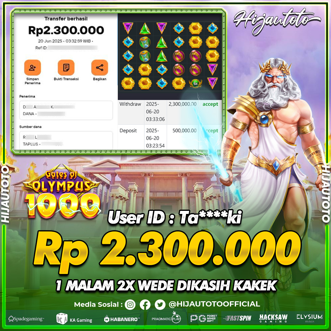 Selamat datang di HIJAUTOTO, tempatnya seru-seruan dan cuan besar! Mulai main cukup dengan modal Rp5.000 aja, taruhan super murah dari Rp100 perak! Mau main slot yang penuh warna? Atau togel dari 20 pasaran paling hits? Atau mungkin tembak ikan yang bikin deg-degan? Tenang, ada juga taruhan bola, sabung ayam, dan live casino yang bikin suasana makin hidup! Daftar sekarang dan dapetin bonus new member 100% langsung, biar modalmu makin tebal. Deposit gampang banget, bisa pakai QRIS, dan kalau butuh bantuan, customer service kita siap 24 jam nonstop. Jadi, tunggu apa lagi? Yuk, gabung dan bawa pulang kemenangannya cuma di HIJAUTOTO!