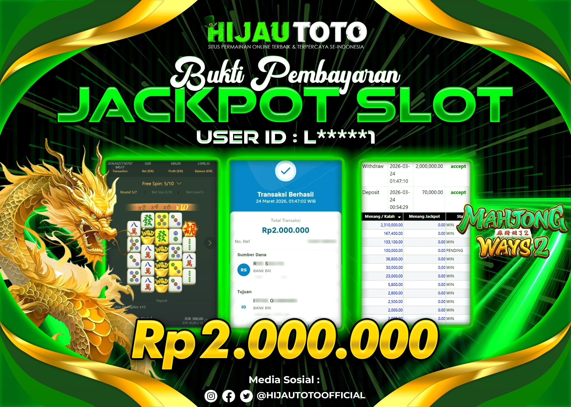 Selamat datang di HIJAUTOTO, tempatnya seru-seruan dan cuan besar! Mulai main cukup dengan modal Rp5.000 aja, taruhan super murah dari Rp100 perak! Mau main slot yang penuh warna? Atau togel dari 20 pasaran paling hits? Atau mungkin tembak ikan yang bikin deg-degan? Tenang, ada juga taruhan bola, sabung ayam, dan live casino yang bikin suasana makin hidup! Daftar sekarang dan dapetin bonus new member 100% langsung, biar modalmu makin tebal. Deposit gampang banget, bisa pakai QRIS, dan kalau butuh bantuan, customer service kita siap 24 jam nonstop. Jadi, tunggu apa lagi? Yuk, gabung dan bawa pulang kemenangannya cuma di HIJAUTOTO!