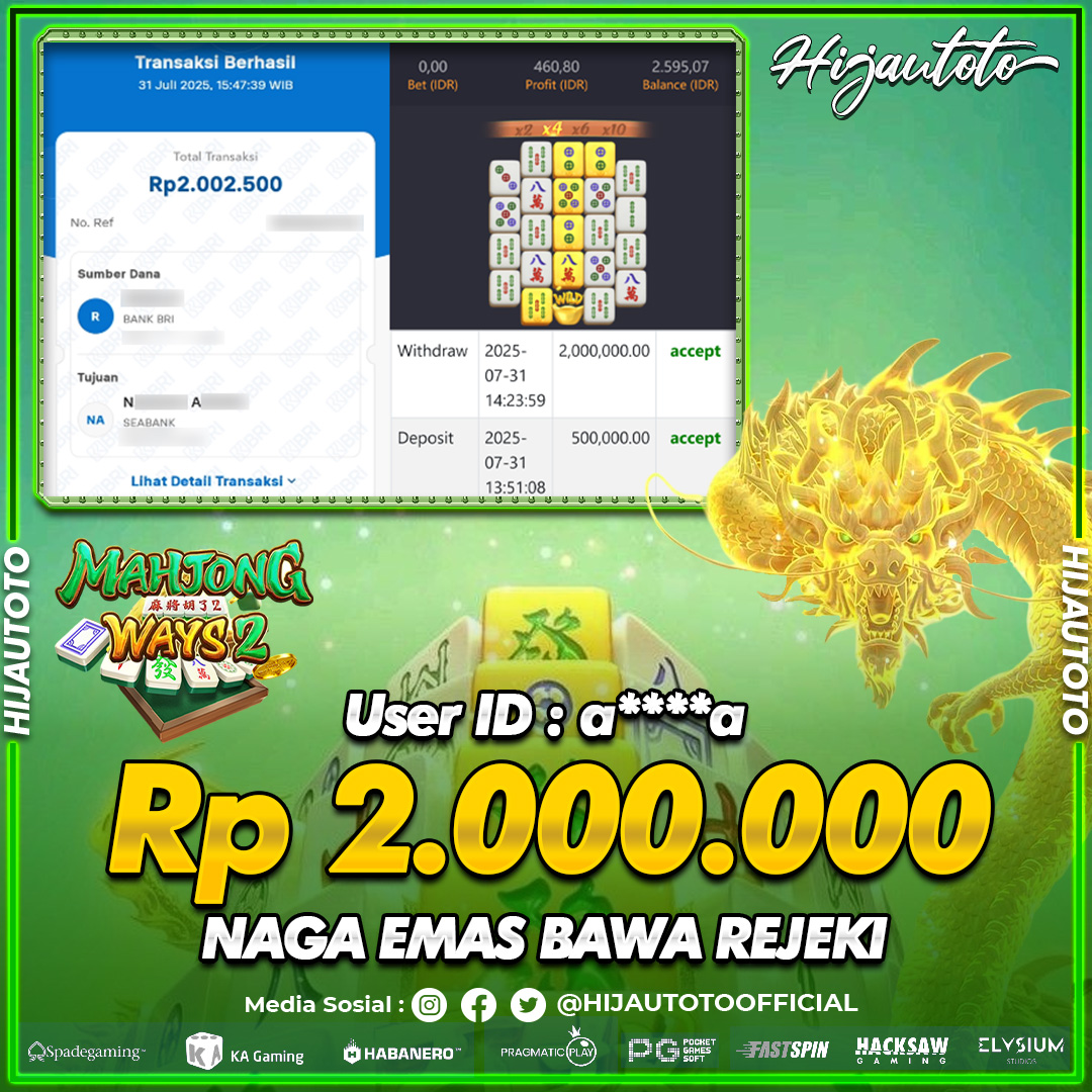 Selamat datang di HIJAUTOTO, tempatnya seru-seruan dan cuan besar! Mulai main cukup dengan modal Rp5.000 aja, taruhan super murah dari Rp100 perak! Mau main slot yang penuh warna? Atau togel dari 20 pasaran paling hits? Atau mungkin tembak ikan yang bikin deg-degan? Tenang, ada juga taruhan bola, sabung ayam, dan live casino yang bikin suasana makin hidup! Daftar sekarang dan dapetin bonus new member 100% langsung, biar modalmu makin tebal. Deposit gampang banget, bisa pakai QRIS, dan kalau butuh bantuan, customer service kita siap 24 jam nonstop. Jadi, tunggu apa lagi? Yuk, gabung dan bawa pulang kemenangannya cuma di HIJAUTOTO!