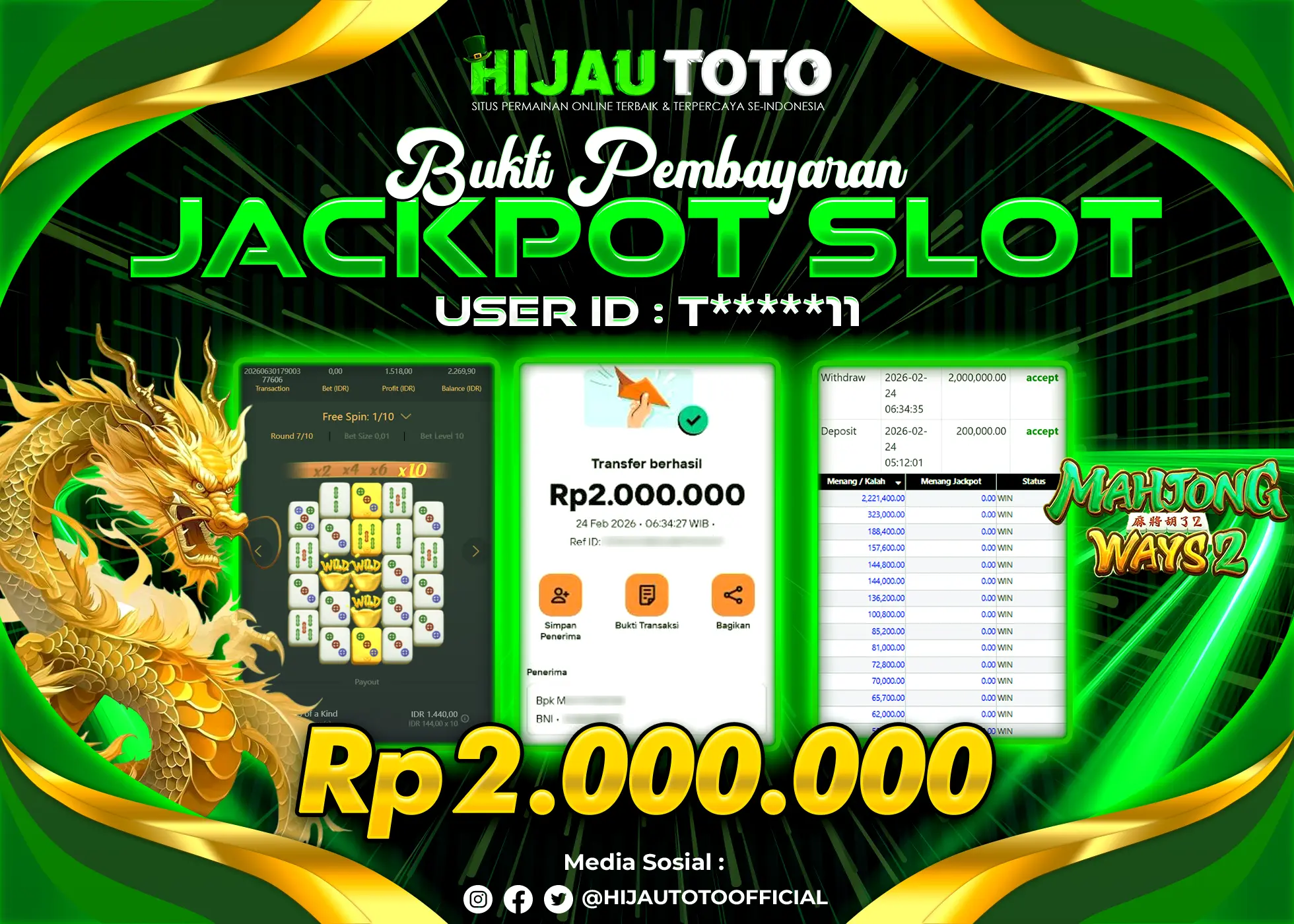 Selamat datang di HIJAUTOTO, tempatnya seru-seruan dan cuan besar! Mulai main cukup dengan modal Rp5.000 aja, taruhan super murah dari Rp100 perak! Mau main slot yang penuh warna? Atau togel dari 20 pasaran paling hits? Atau mungkin tembak ikan yang bikin deg-degan? Tenang, ada juga taruhan bola, sabung ayam, dan live casino yang bikin suasana makin hidup! Daftar sekarang dan dapetin bonus new member 100% langsung, biar modalmu makin tebal. Deposit gampang banget, bisa pakai QRIS, dan kalau butuh bantuan, customer service kita siap 24 jam nonstop. Jadi, tunggu apa lagi? Yuk, gabung dan bawa pulang kemenangannya cuma di HIJAUTOTO!