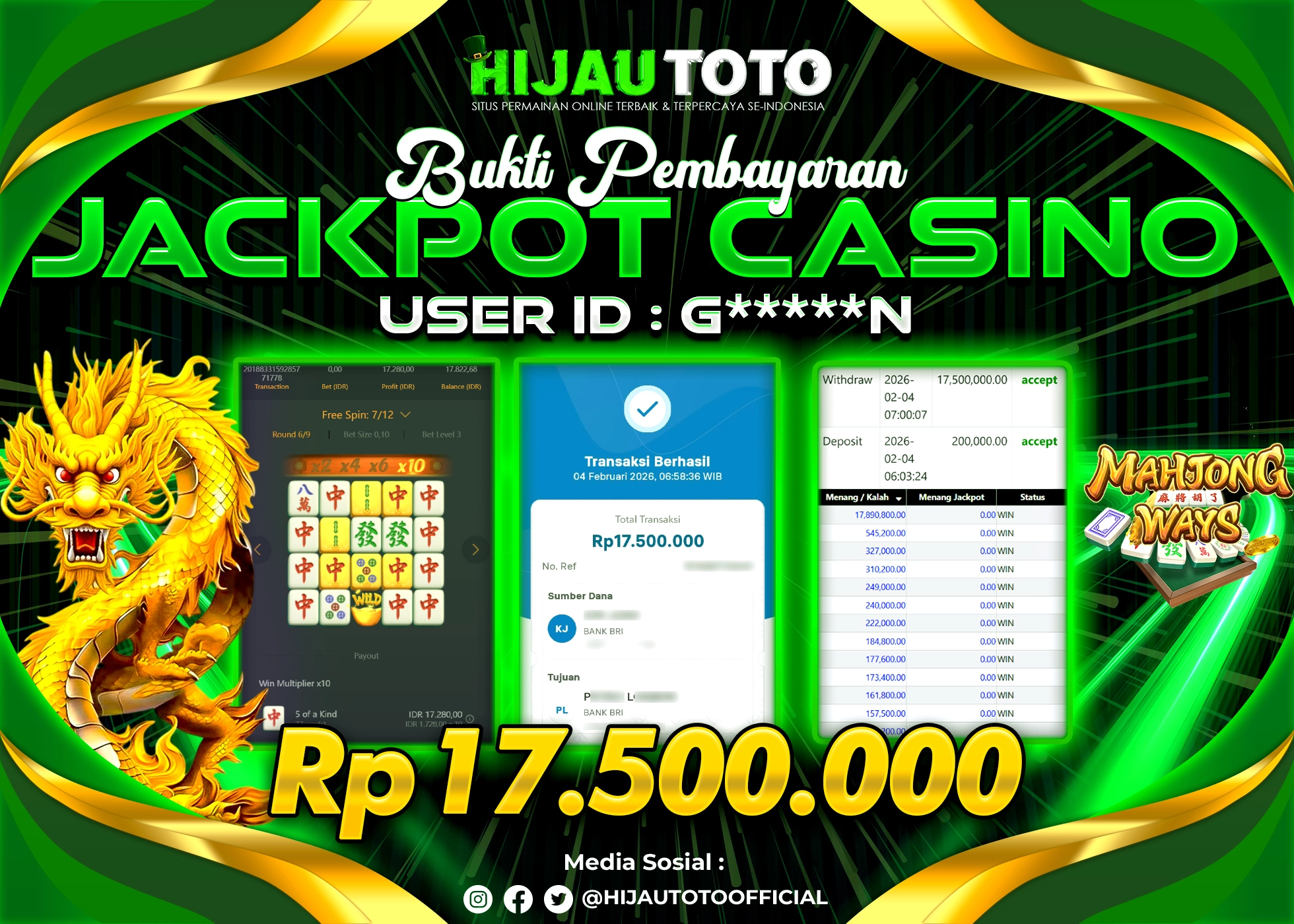 Cuma di HIJAUTOTO, tempat paling AMAN, CEPAT, & TERPERCAYA buat pecinta game SLOT MAHJONG WAYS!
