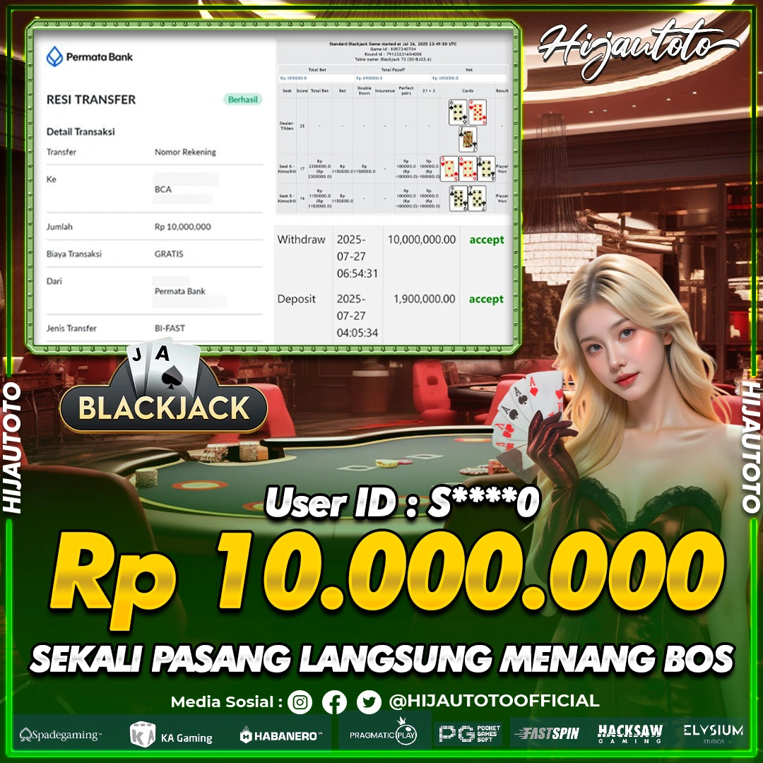 Selamat Kepada Member HIJAUTOTO S****0 Telah Jackpot Di LIVE CASINO BLACKJACK