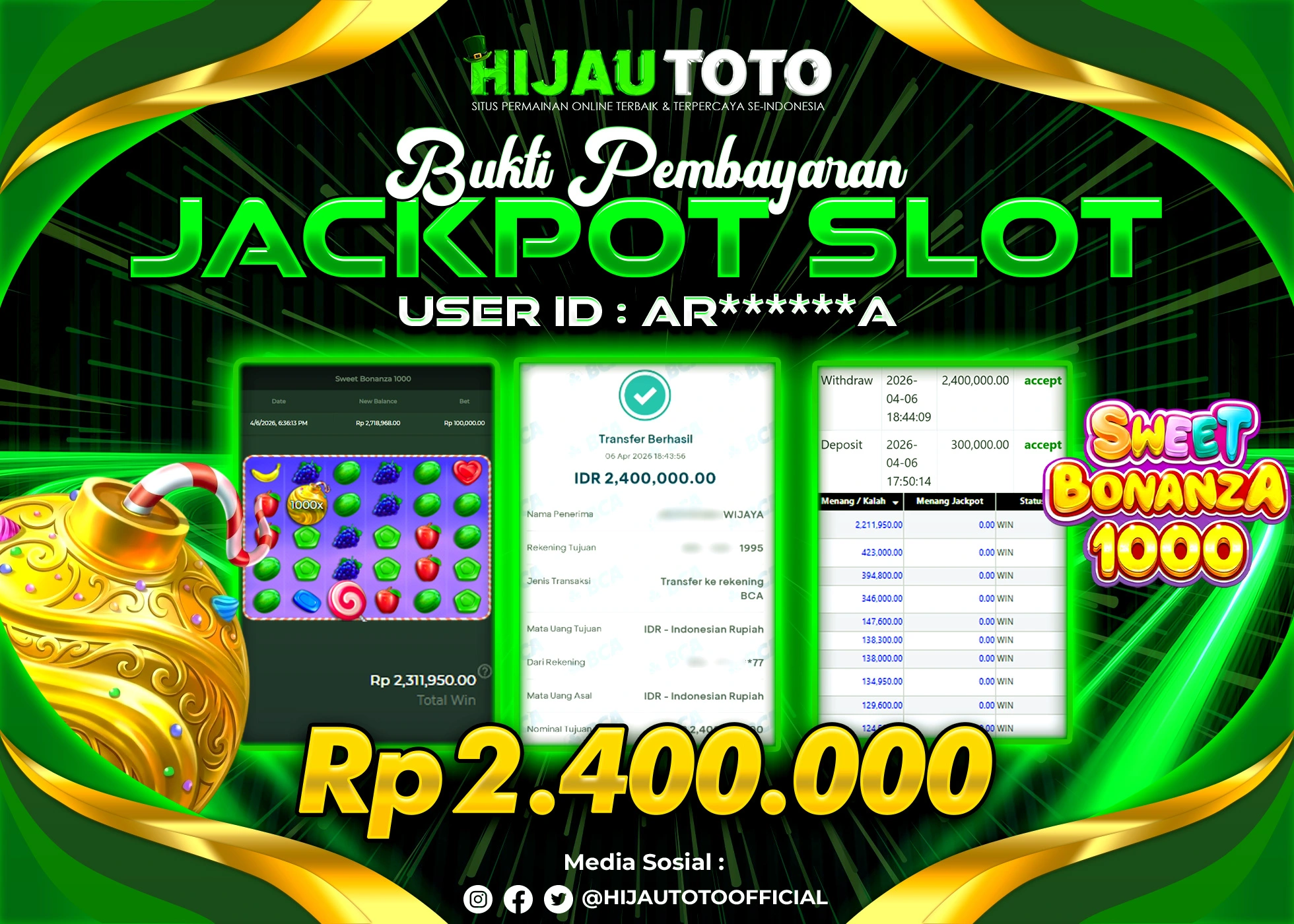 Selamat datang di HIJAUTOTO, tempatnya seru-seruan dan cuan besar! Mulai main cukup dengan modal Rp5.000 aja, taruhan super murah dari Rp100 perak! Mau main slot yang penuh warna? Atau togel dari 20 pasaran paling hits? Atau mungkin tembak ikan yang bikin deg-degan? Tenang, ada juga taruhan bola, sabung ayam, dan live casino yang bikin suasana makin hidup! Daftar sekarang dan dapetin bonus new member 100% langsung, biar modalmu makin tebal. Deposit gampang banget, bisa pakai QRIS, dan kalau butuh bantuan, customer service kita siap 24 jam nonstop. Jadi, tunggu apa lagi? Yuk, gabung dan bawa pulang kemenangannya cuma di HIJAUTOTO!