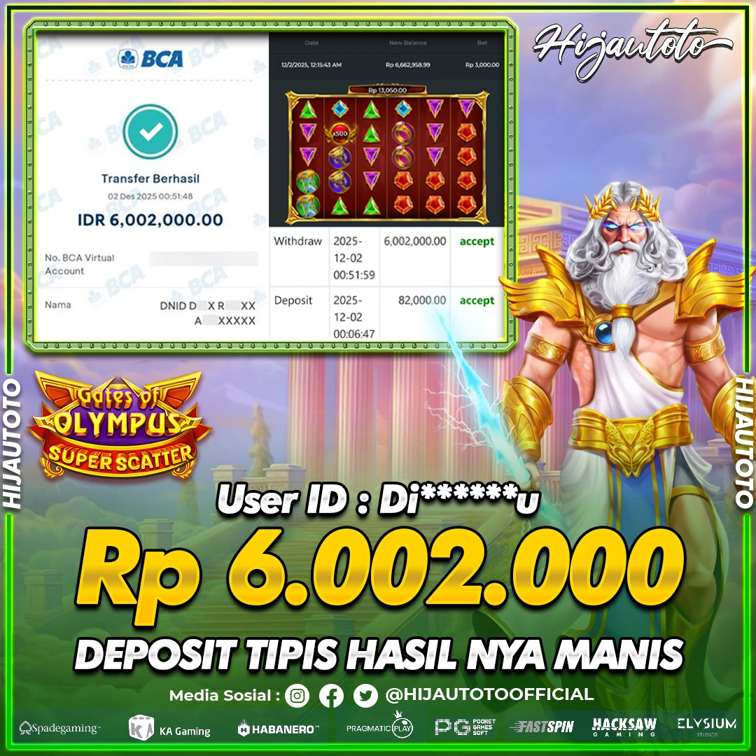 Selamat datang di HIJAUTOTO, tempatnya seru-seruan dan cuan besar! Mulai main cukup dengan modal Rp5.000 aja, taruhan super murah dari Rp100 perak! Mau main slot yang penuh warna? Atau togel dari 20 pasaran paling hits? Atau mungkin tembak ikan yang bikin deg-degan? Tenang, ada juga taruhan bola, sabung ayam, dan live casino yang bikin suasana makin hidup! Daftar sekarang dan dapetin bonus new member 100% langsung, biar modalmu makin tebal. Deposit gampang banget, bisa pakai QRIS, dan kalau butuh bantuan, customer service kita siap 24 jam nonstop. Jadi, tunggu apa lagi? Yuk, gabung dan bawa pulang kemenangannya cuma di HIJAUTOTO!