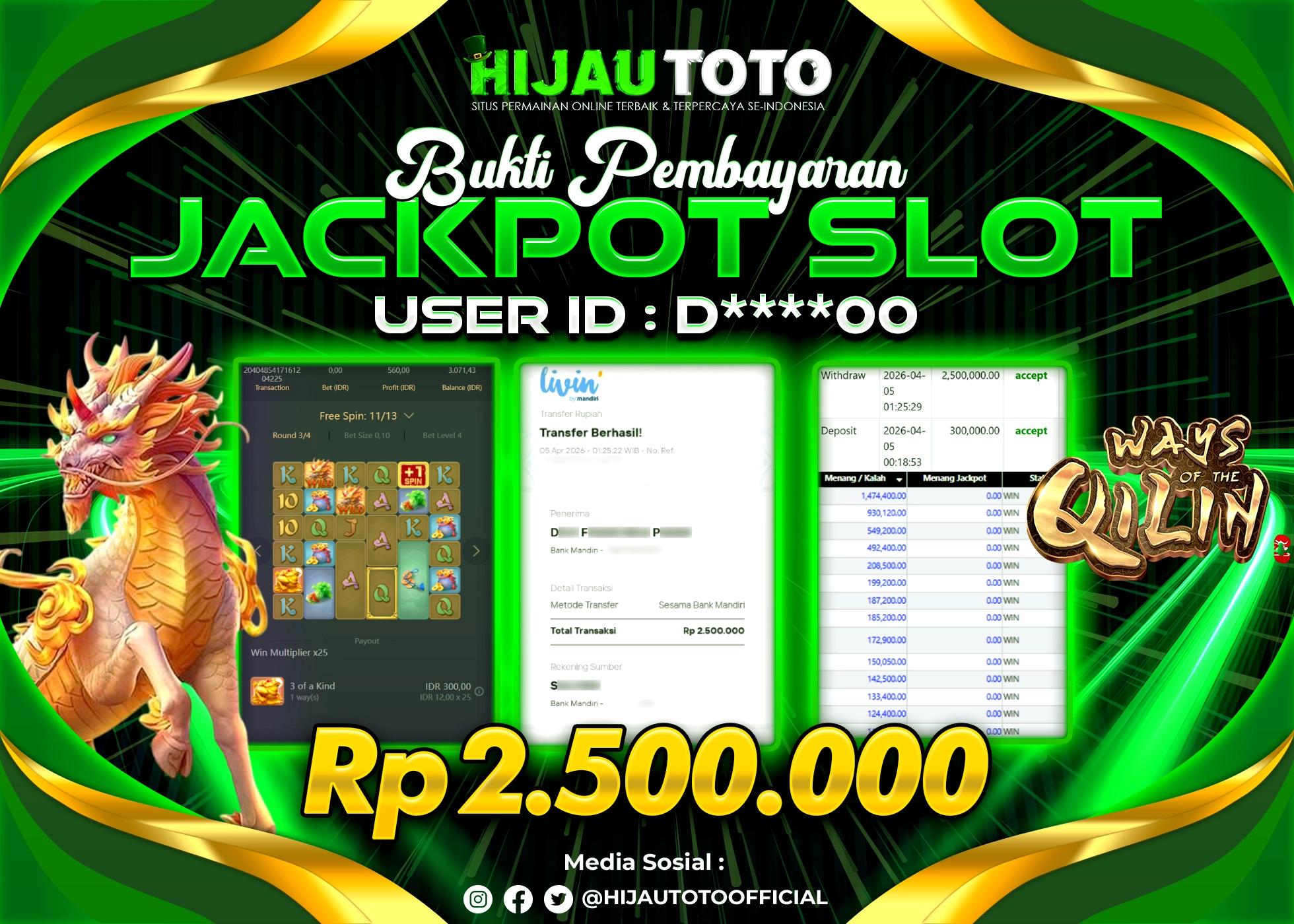 Selamat datang di HIJAUTOTO, tempatnya seru-seruan dan cuan besar! Mulai main cukup dengan modal Rp5.000 aja, taruhan super murah dari Rp100 perak! Mau main slot yang penuh warna? Atau togel dari 20 pasaran paling hits? Atau mungkin tembak ikan yang bikin deg-degan? Tenang, ada juga taruhan bola, sabung ayam, dan live casino yang bikin suasana makin hidup! Daftar sekarang dan dapetin bonus new member 100% langsung, biar modalmu makin tebal. Deposit gampang banget, bisa pakai QRIS, dan kalau butuh bantuan, customer service kita siap 24 jam nonstop. Jadi, tunggu apa lagi? Yuk, gabung dan bawa pulang kemenangannya cuma di HIJAUTOTO!