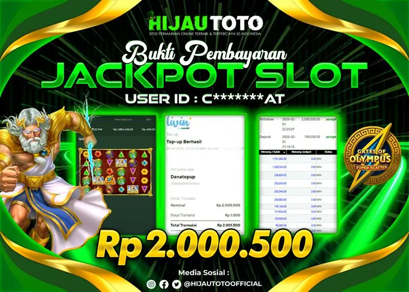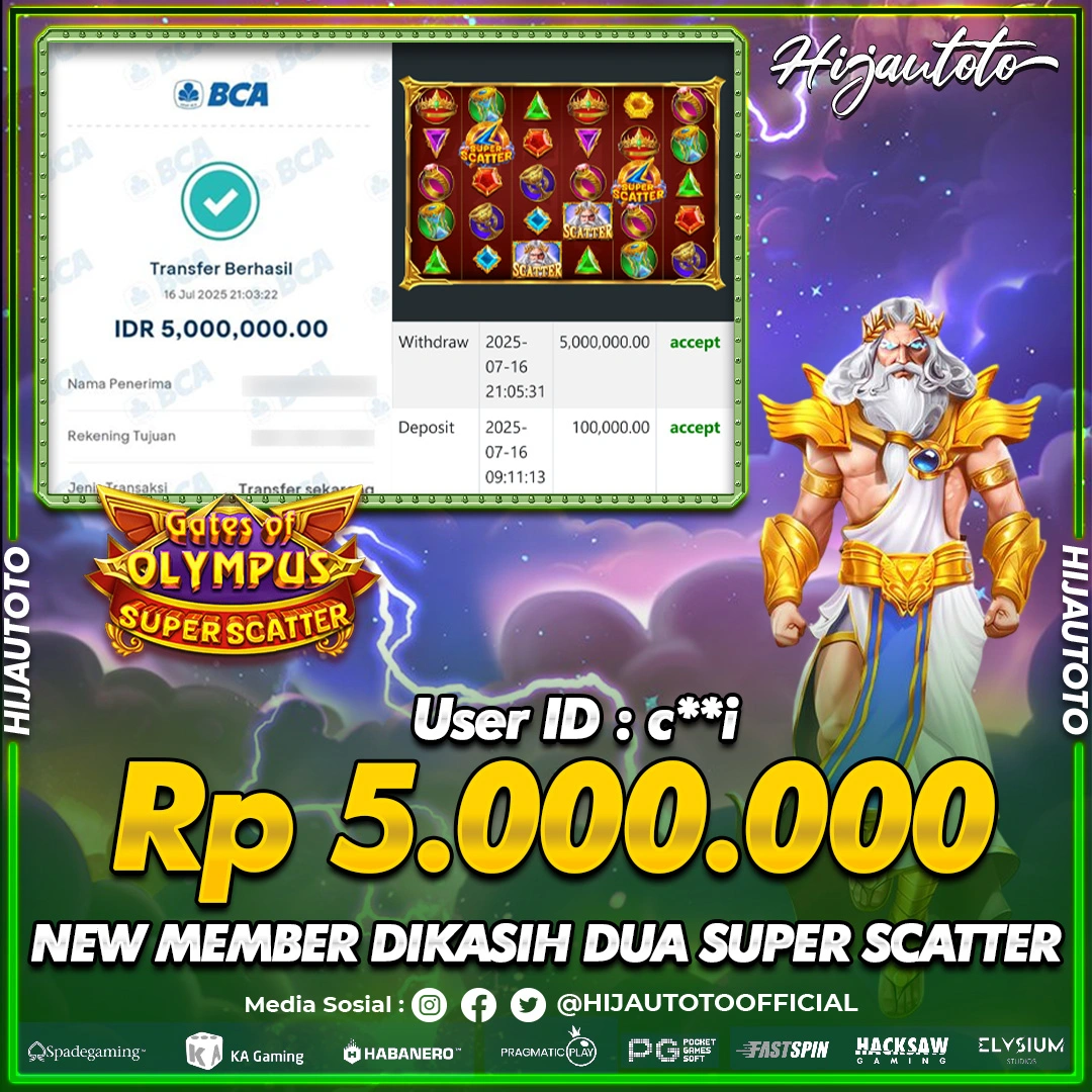Selamat Kepada Member HIJAUTOTO C*******AT Telah Jackpot Di SLOT GATES OF OLYMPUS SUPER SCATTER