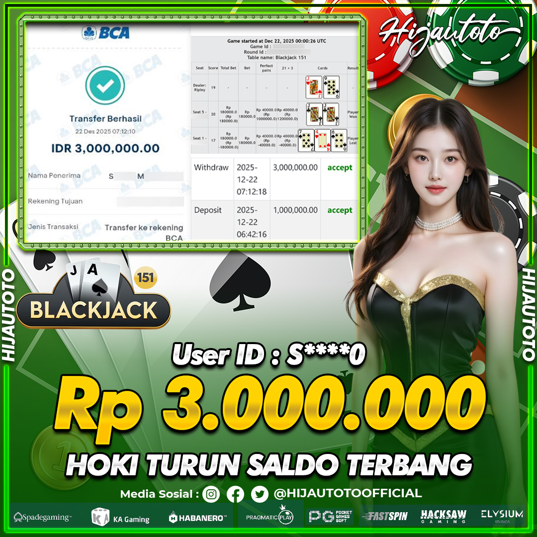 Selamat datang di HIJAUTOTO, tempatnya seru-seruan dan cuan besar! Mulai main cukup dengan modal Rp5.000 aja, taruhan super murah dari Rp100 perak! Mau main slot yang penuh warna? Atau togel dari 20 pasaran paling hits? Atau mungkin tembak ikan yang bikin deg-degan? Tenang, ada juga taruhan bola, sabung ayam, dan live casino yang bikin suasana makin hidup! Daftar sekarang dan dapetin bonus new member 100% langsung, biar modalmu makin tebal. Deposit gampang banget, bisa pakai QRIS, dan kalau butuh bantuan, customer service kita siap 24 jam nonstop. Jadi, tunggu apa lagi? Yuk, gabung dan bawa pulang kemenangannya cuma di HIJAUTOTO!