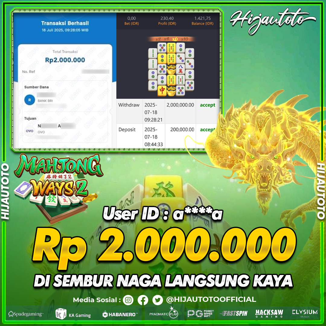 Selamat datang di HIJAUTOTO, tempatnya seru-seruan dan cuan besar! Mulai main cukup dengan modal Rp5.000 aja, taruhan super murah dari Rp100 perak! Mau main slot yang penuh warna? Atau togel dari 20 pasaran paling hits? Atau mungkin tembak ikan yang bikin deg-degan? Tenang, ada juga taruhan bola, sabung ayam, dan live casino yang bikin suasana makin hidup! Daftar sekarang dan dapetin bonus new member 100% langsung, biar modalmu makin tebal. Deposit gampang banget, bisa pakai QRIS, dan kalau butuh bantuan, customer service kita siap 24 jam nonstop. Jadi, tunggu apa lagi? Yuk, gabung dan bawa pulang kemenangannya cuma di HIJAUTOTO!