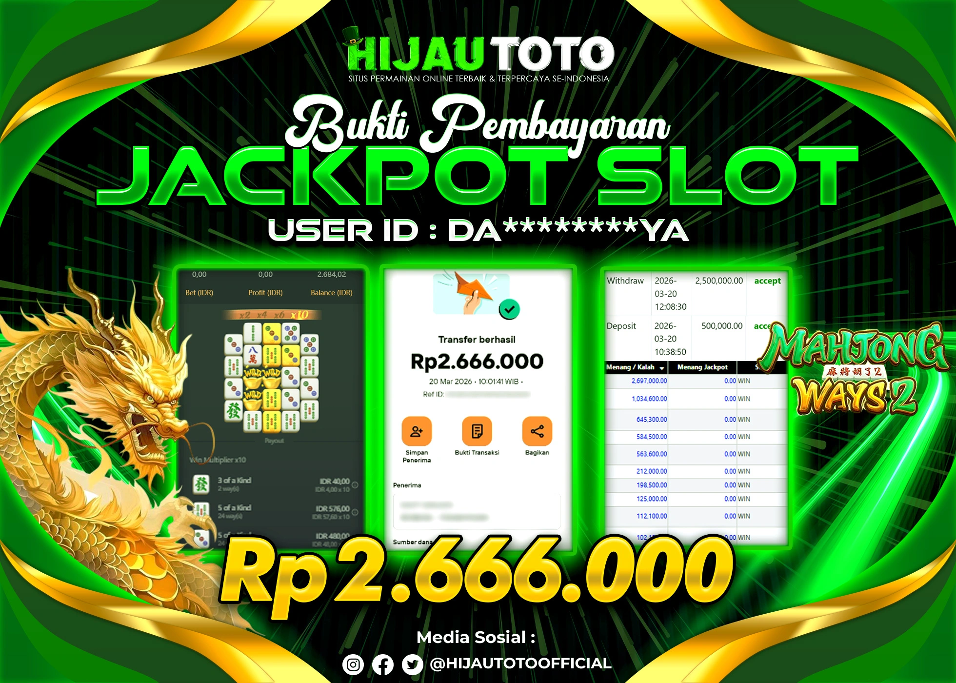 Selamat datang di HIJAUTOTO, tempatnya seru-seruan dan cuan besar! Mulai main cukup dengan modal Rp5.000 aja, taruhan super murah dari Rp100 perak! Mau main slot yang penuh warna? Atau togel dari 20 pasaran paling hits? Atau mungkin tembak ikan yang bikin deg-degan? Tenang, ada juga taruhan bola, sabung ayam, dan live casino yang bikin suasana makin hidup! Daftar sekarang dan dapetin bonus new member 100% langsung, biar modalmu makin tebal. Deposit gampang banget, bisa pakai QRIS, dan kalau butuh bantuan, customer service kita siap 24 jam nonstop. Jadi, tunggu apa lagi? Yuk, gabung dan bawa pulang kemenangannya cuma di HIJAUTOTO!