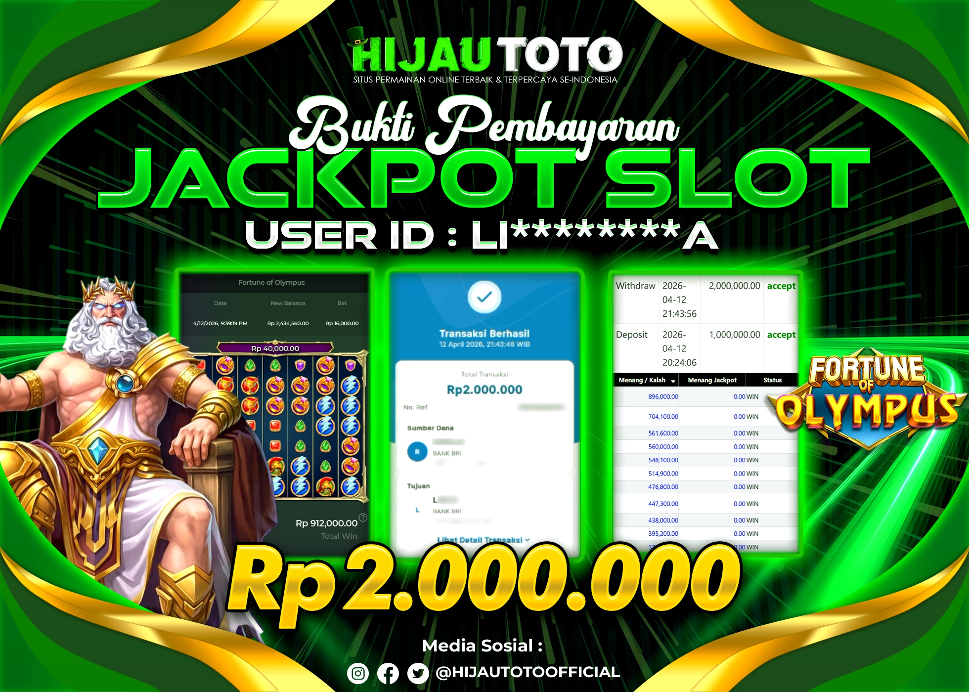Bergabung dengan HIJAUTOTO sangat mudah dan cepat. Cukup lakukan pendaftaran dengan data lengkap, lakukan deposit minimal Rp5.000 melalui berbagai metode termasuk QRIS, dan mulai bertaruh dengan minimal taruhan Rp100. Dapatkan juga bonus new member 100% untuk modal bermain lebih besar.