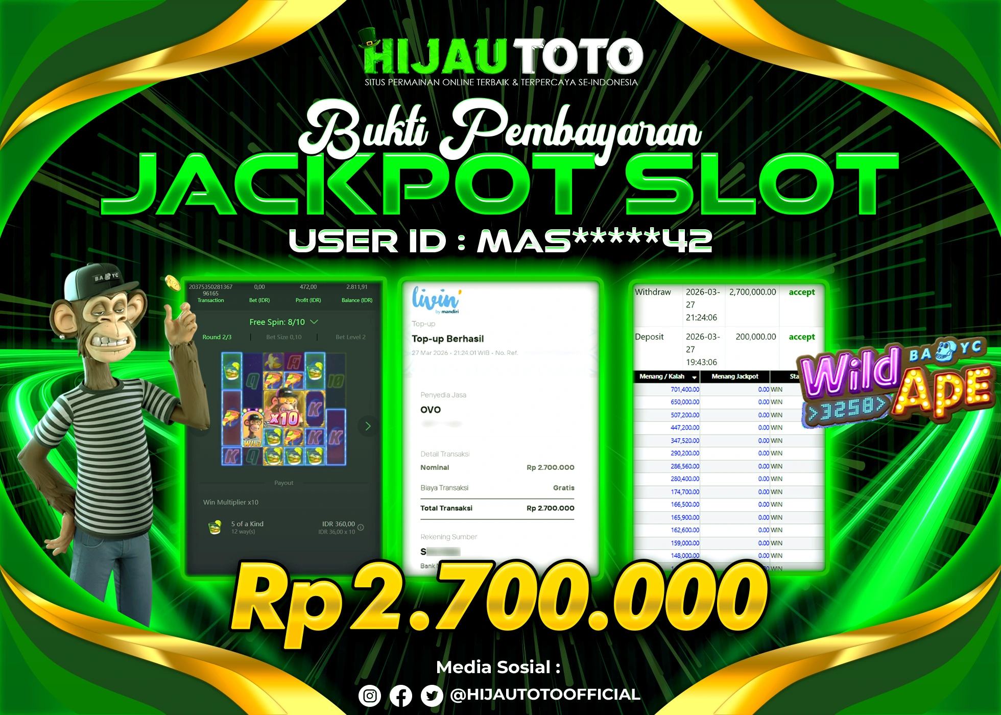 β¨ JACKPOT DI SLOT WILD APE β¨