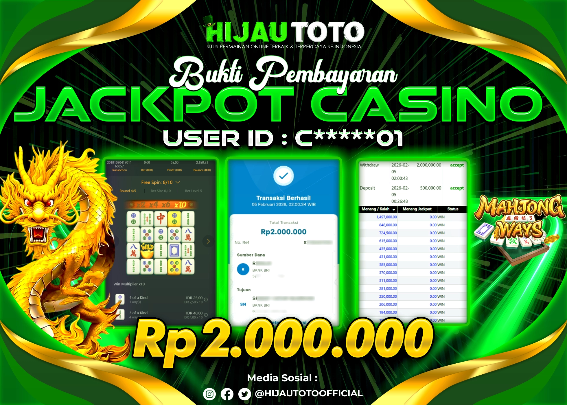 Bergabung dengan HIJAUTOTO sangat mudah dan cepat. Cukup lakukan pendaftaran dengan data lengkap, lakukan deposit minimal Rp5.000 melalui berbagai metode termasuk QRIS, dan mulai bertaruh dengan minimal taruhan Rp100. Dapatkan juga bonus new member 100% untuk modal bermain lebih besar.