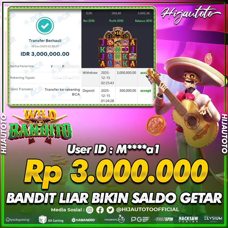 Selamat Kepada Member HIJAUTOTO M*****1 Telah Jackpot Di SLOT WILD BANDITO