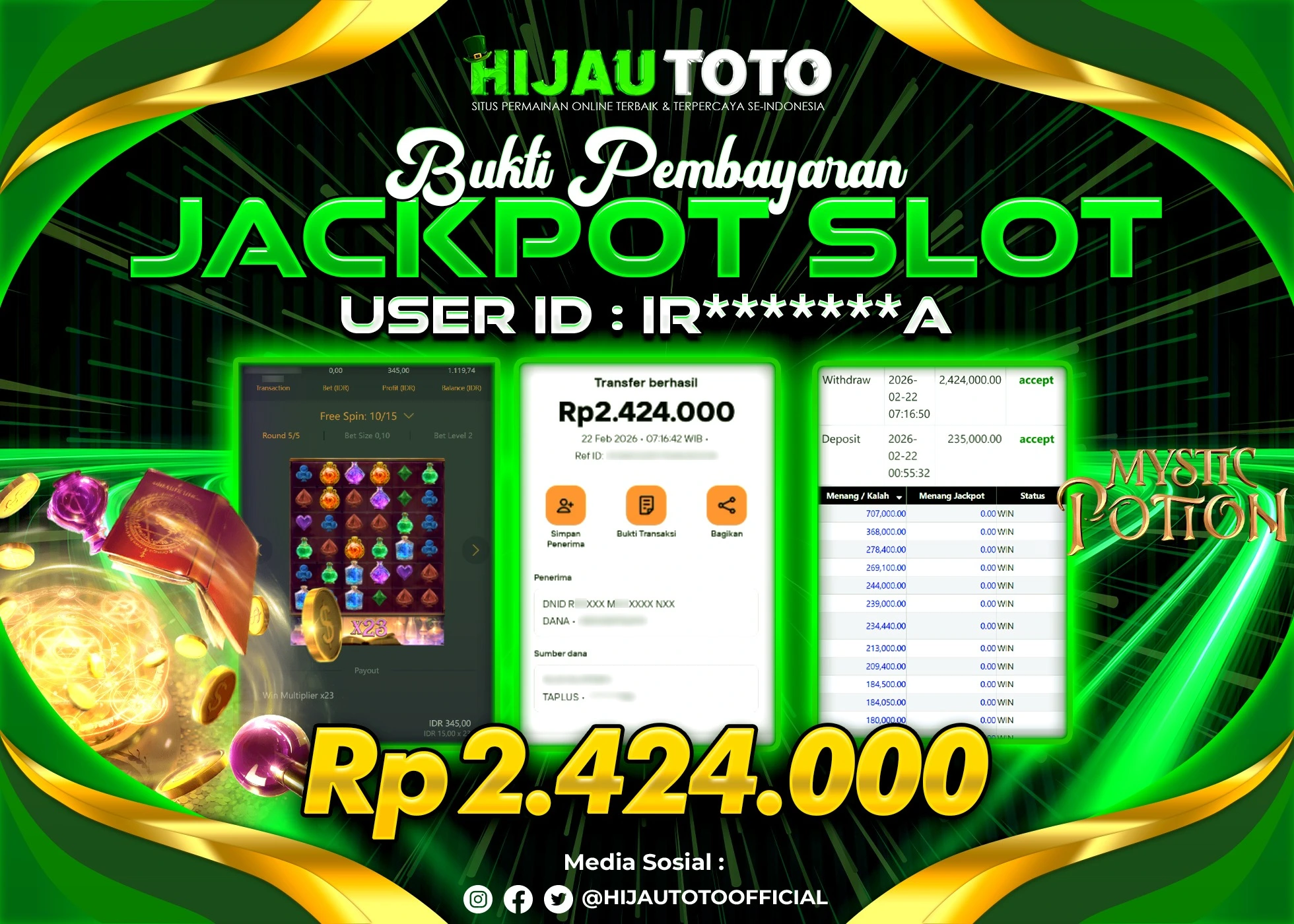 Selamat Kepada Member HIJAUTOTO IR******A Telah Jackpot Di SLOT MYSTIC POTION