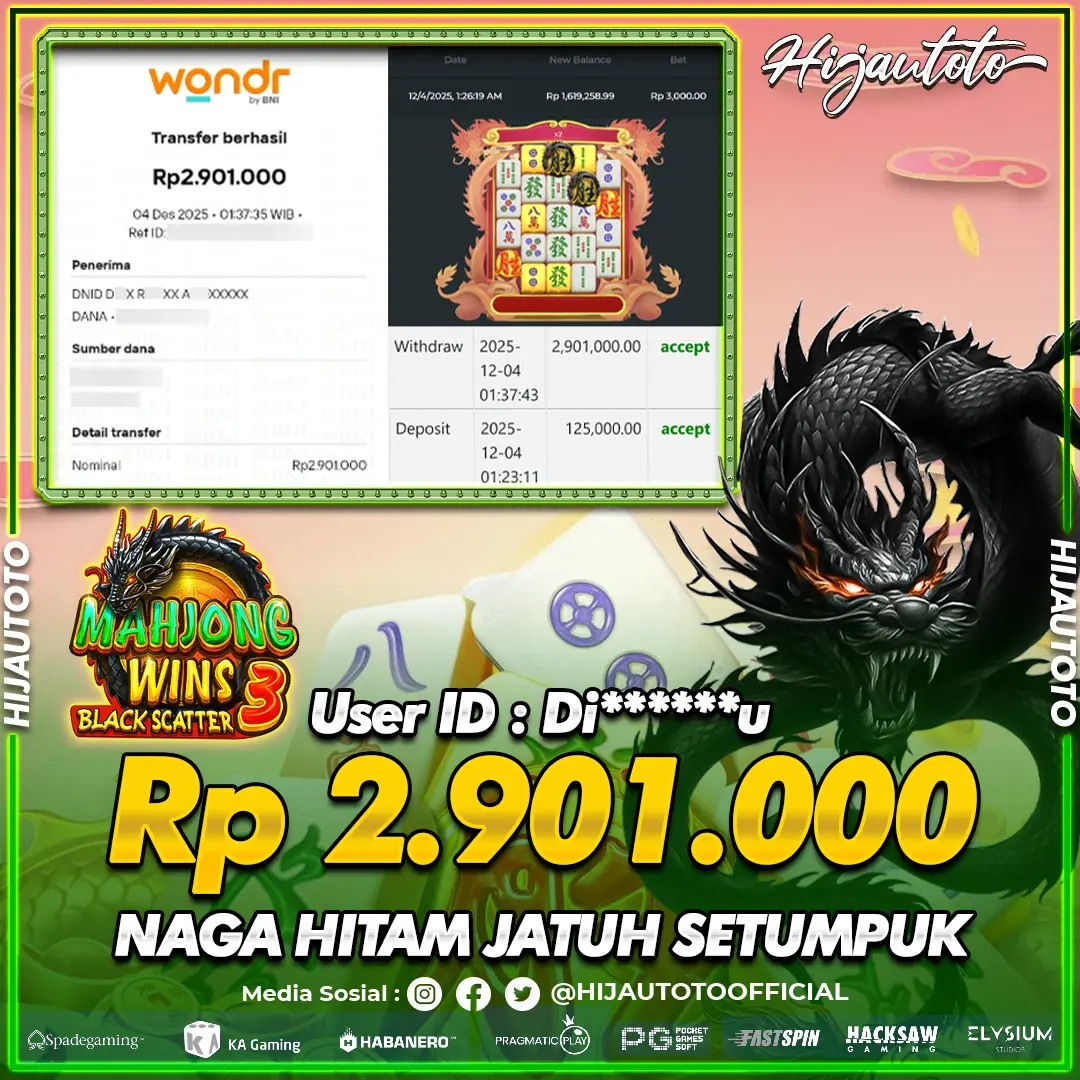 Karena berhasil memenangkan Rp.Rp.3.400.000 dari permainan seru SLOT MAHJONG WAYS di HIJAUTOTO! πŸ’°πŸ’Έ
