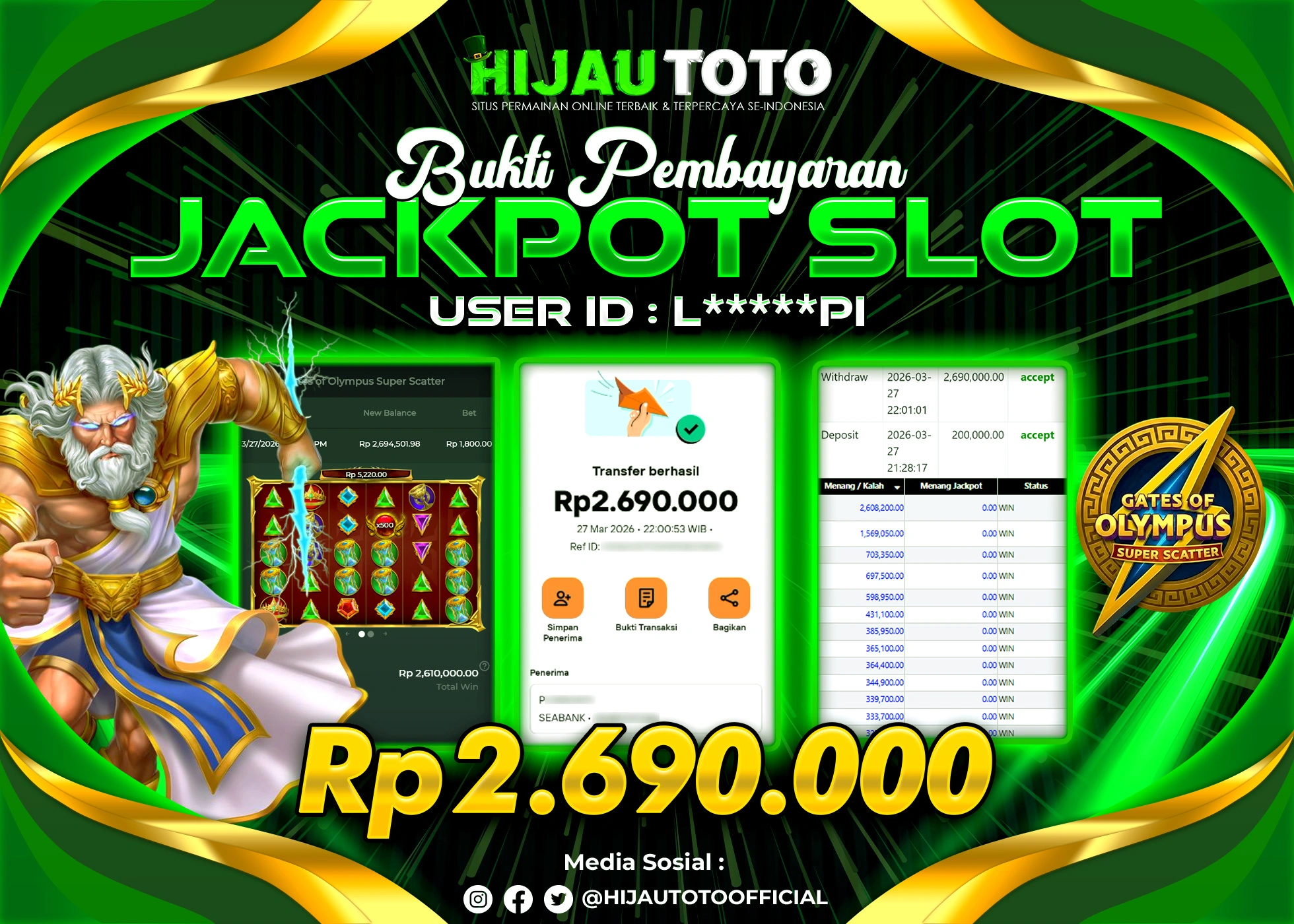 Selamat Kepada Member HIJAUTOTO L*****PI Telah Jackpot Di SLOT GATES OF OLYMPUS SUPER SCATTER