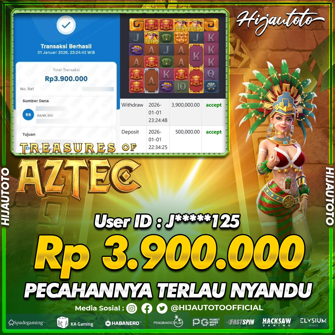 Selamat Kepada Member HIJAUTOTO J******25 Telah Jackpot Di SLOT TREASURES OF AZTEC