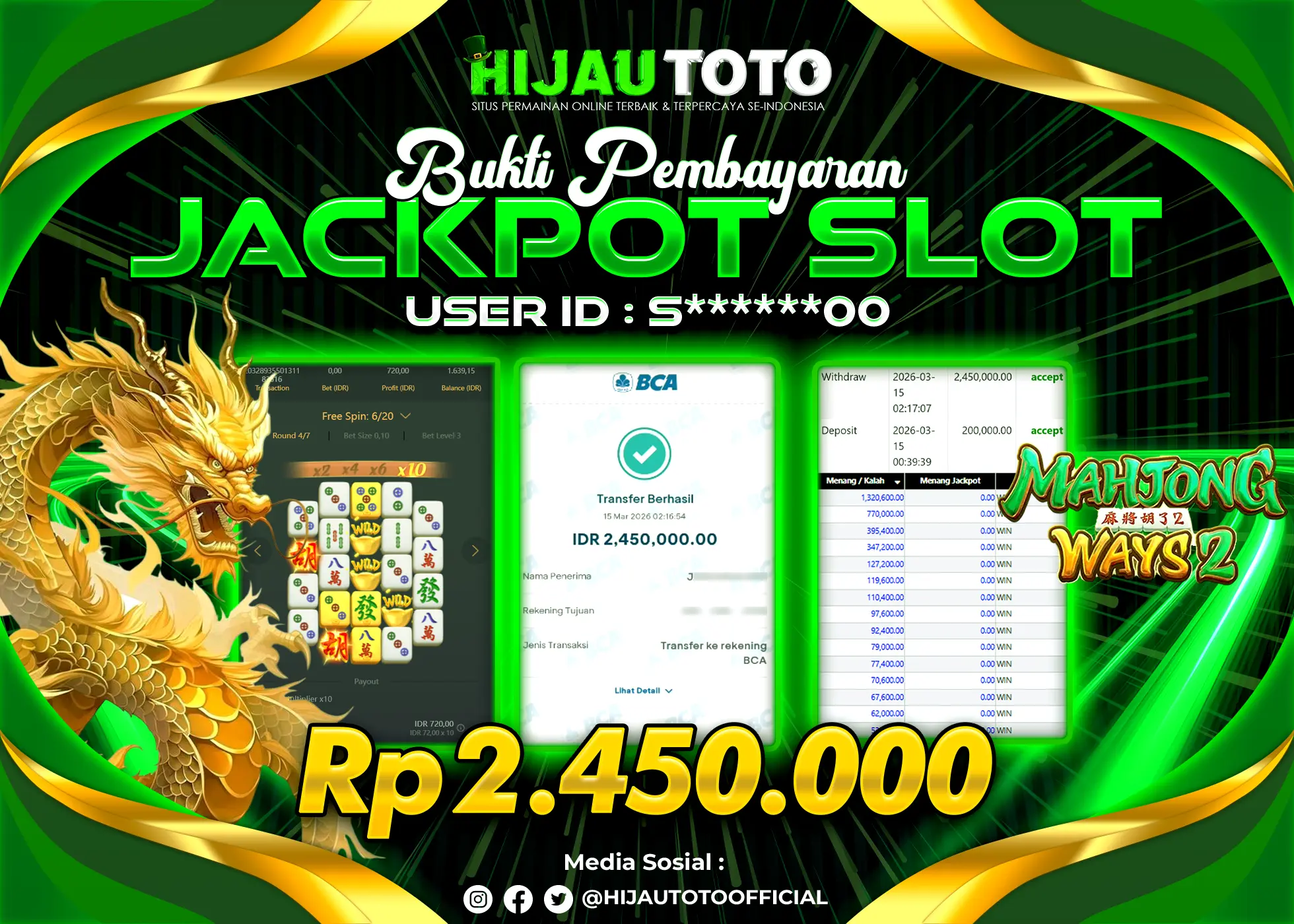 Bergabung dengan HIJAUTOTO sangat mudah dan cepat. Cukup lakukan pendaftaran dengan data lengkap, lakukan deposit minimal Rp5.000 melalui berbagai metode termasuk QRIS, dan mulai bertaruh dengan minimal taruhan Rp100. Dapatkan juga bonus new member 100% untuk modal bermain lebih besar.