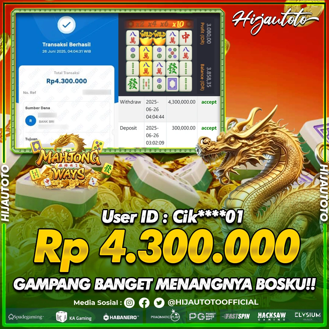 Selamat datang di HIJAUTOTO, tempatnya seru-seruan dan cuan besar! Mulai main cukup dengan modal Rp5.000 aja, taruhan super murah dari Rp100 perak! Mau main slot yang penuh warna? Atau togel dari 20 pasaran paling hits? Atau mungkin tembak ikan yang bikin deg-degan? Tenang, ada juga taruhan bola, sabung ayam, dan live casino yang bikin suasana makin hidup! Daftar sekarang dan dapetin bonus new member 100% langsung, biar modalmu makin tebal. Deposit gampang banget, bisa pakai QRIS, dan kalau butuh bantuan, customer service kita siap 24 jam nonstop. Jadi, tunggu apa lagi? Yuk, gabung dan bawa pulang kemenangannya cuma di HIJAUTOTO!