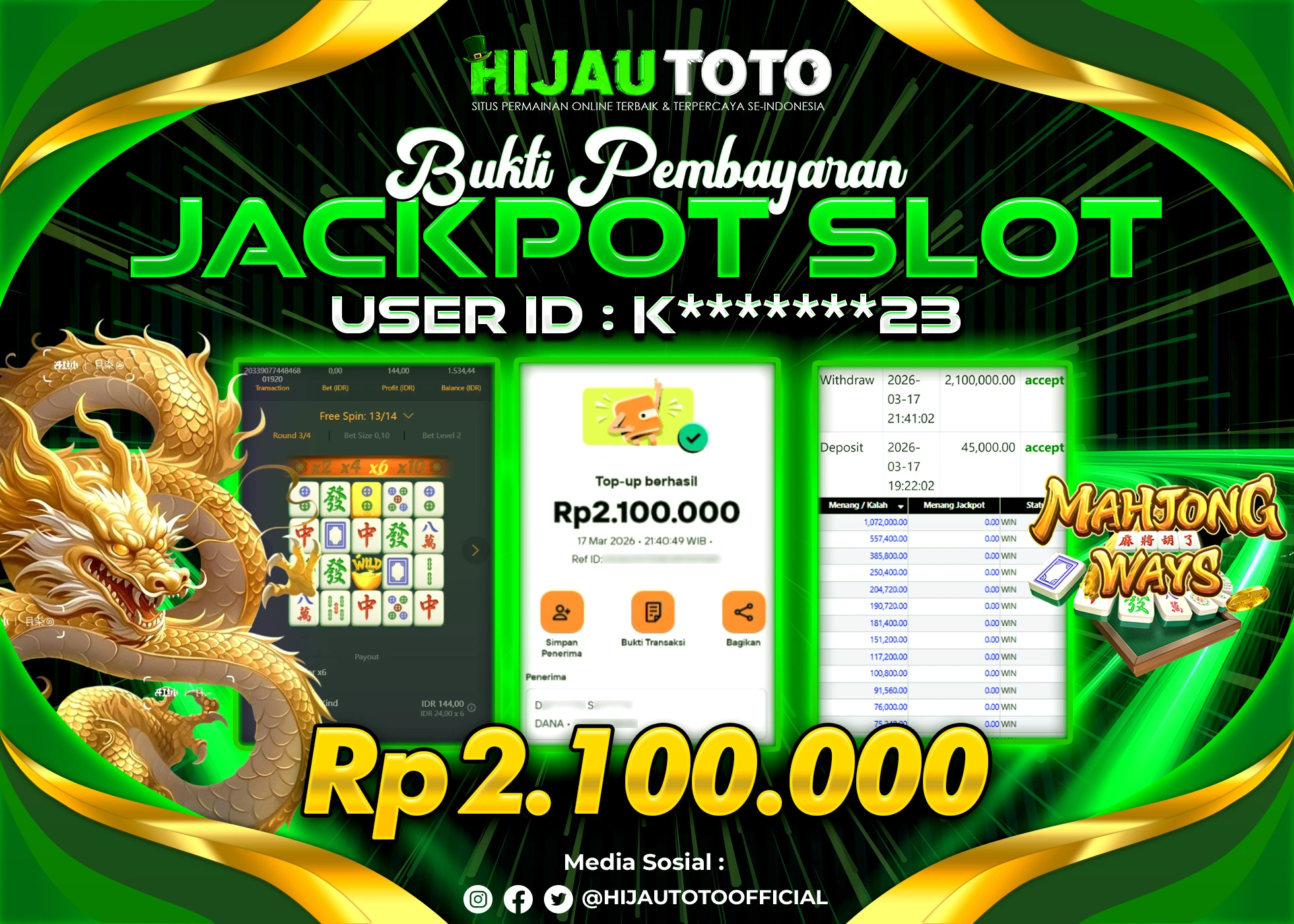 Selamat datang di HIJAUTOTO, tempatnya seru-seruan dan cuan besar! Mulai main cukup dengan modal Rp5.000 aja, taruhan super murah dari Rp100 perak! Mau main slot yang penuh warna? Atau togel dari 20 pasaran paling hits? Atau mungkin tembak ikan yang bikin deg-degan? Tenang, ada juga taruhan bola, sabung ayam, dan live casino yang bikin suasana makin hidup! Daftar sekarang dan dapetin bonus new member 100% langsung, biar modalmu makin tebal. Deposit gampang banget, bisa pakai QRIS, dan kalau butuh bantuan, customer service kita siap 24 jam nonstop. Jadi, tunggu apa lagi? Yuk, gabung dan bawa pulang kemenangannya cuma di HIJAUTOTO!