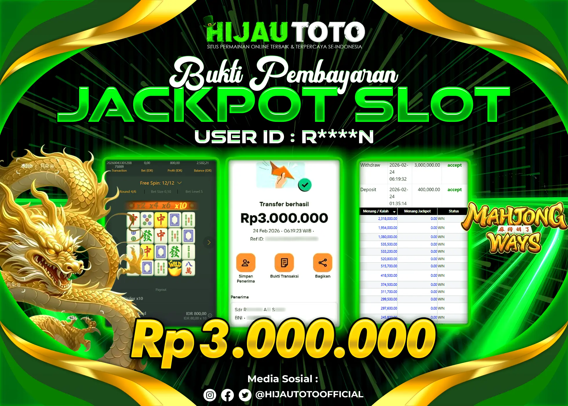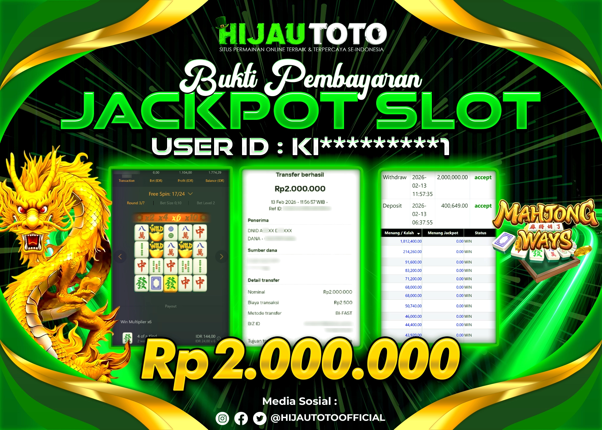 Selamat datang di HIJAUTOTO, tempatnya seru-seruan dan cuan besar! Mulai main cukup dengan modal Rp5.000 aja, taruhan super murah dari Rp100 perak! Mau main slot yang penuh warna? Atau togel dari 20 pasaran paling hits? Atau mungkin tembak ikan yang bikin deg-degan? Tenang, ada juga taruhan bola, sabung ayam, dan live casino yang bikin suasana makin hidup! Daftar sekarang dan dapetin bonus new member 100% langsung, biar modalmu makin tebal. Deposit gampang banget, bisa pakai QRIS, dan kalau butuh bantuan, customer service kita siap 24 jam nonstop. Jadi, tunggu apa lagi? Yuk, gabung dan bawa pulang kemenangannya cuma di HIJAUTOTO!