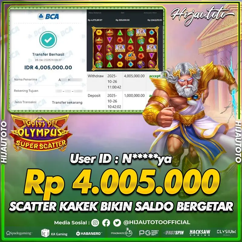 Selamat Kepada Member HIJAUTOTO N*****YA Telah Jackpot Di SLOT GATES OF OLYMPUS SUPER SCATTER
