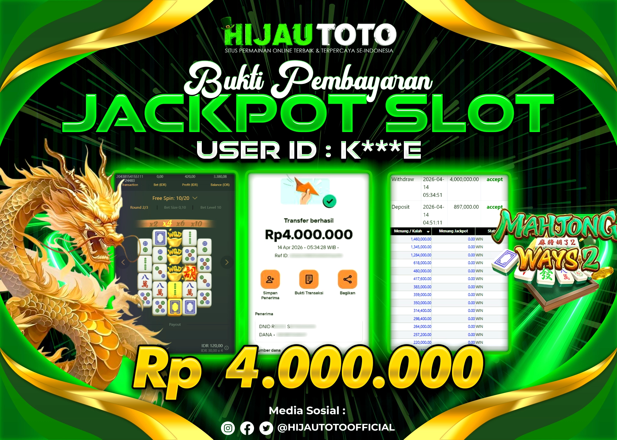 Bergabung dengan HIJAUTOTO sangat mudah dan cepat. Cukup lakukan pendaftaran dengan data lengkap, lakukan deposit minimal Rp5.000 melalui berbagai metode termasuk QRIS, dan mulai bertaruh dengan minimal taruhan Rp100. Dapatkan juga bonus new member 100% untuk modal bermain lebih besar.