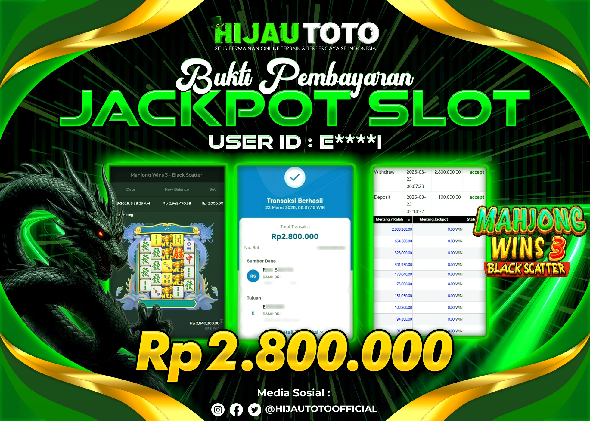 Bergabung dengan HIJAUTOTO sangat mudah dan cepat. Cukup lakukan pendaftaran dengan data lengkap, lakukan deposit minimal Rp5.000 melalui berbagai metode termasuk QRIS, dan mulai bertaruh dengan minimal taruhan Rp100. Dapatkan juga bonus new member 100% untuk modal bermain lebih besar.