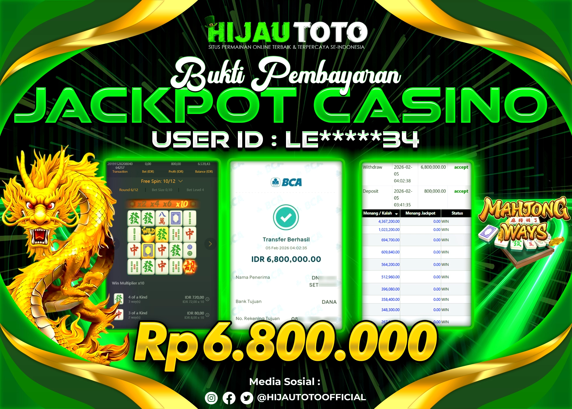 Bergabung dengan HIJAUTOTO sangat mudah dan cepat. Cukup lakukan pendaftaran dengan data lengkap, lakukan deposit minimal Rp5.000 melalui berbagai metode termasuk QRIS, dan mulai bertaruh dengan minimal taruhan Rp100. Dapatkan juga bonus new member 100% untuk modal bermain lebih besar.