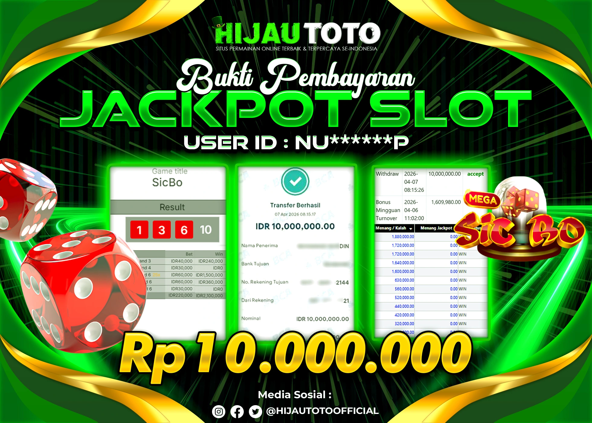 HIJAUTOTO adalah pilihan terbaik bagi Anda yang mencari platform judi online terpercaya dengan modal terjangkau, ragam permainan lengkap, bonus menguntungkan, dan layanan profesional 24 jam. Semua kebutuhan hiburan dan keuntungan Anda terpenuhi dalam satu tempat.