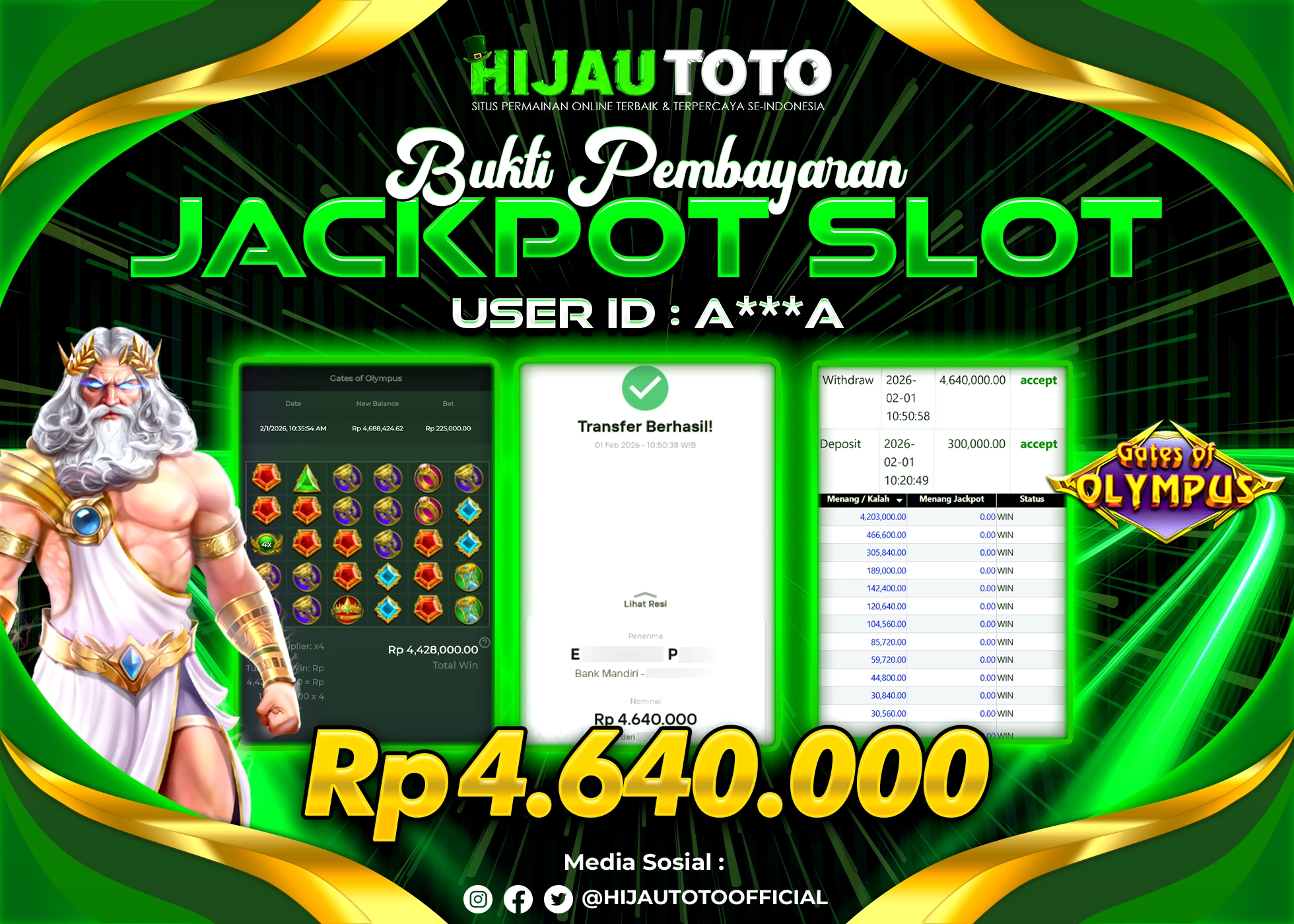Selamat datang di HIJAUTOTO, tempatnya seru-seruan dan cuan besar! Mulai main cukup dengan modal Rp5.000 aja, taruhan super murah dari Rp100 perak! Mau main slot yang penuh warna? Atau togel dari 20 pasaran paling hits? Atau mungkin tembak ikan yang bikin deg-degan? Tenang, ada juga taruhan bola, sabung ayam, dan live casino yang bikin suasana makin hidup! Daftar sekarang dan dapetin bonus new member 100% langsung, biar modalmu makin tebal. Deposit gampang banget, bisa pakai QRIS, dan kalau butuh bantuan, customer service kita siap 24 jam nonstop. Jadi, tunggu apa lagi? Yuk, gabung dan bawa pulang kemenangannya cuma di HIJAUTOTO!