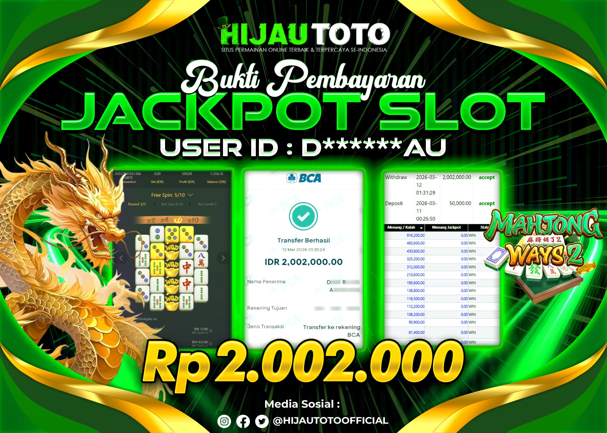 Selamat datang di HIJAUTOTO, tempatnya seru-seruan dan cuan besar! Mulai main cukup dengan modal Rp5.000 aja, taruhan super murah dari Rp100 perak! Mau main slot yang penuh warna? Atau togel dari 20 pasaran paling hits? Atau mungkin tembak ikan yang bikin deg-degan? Tenang, ada juga taruhan bola, sabung ayam, dan live casino yang bikin suasana makin hidup! Daftar sekarang dan dapetin bonus new member 100% langsung, biar modalmu makin tebal. Deposit gampang banget, bisa pakai QRIS, dan kalau butuh bantuan, customer service kita siap 24 jam nonstop. Jadi, tunggu apa lagi? Yuk, gabung dan bawa pulang kemenangannya cuma di HIJAUTOTO!